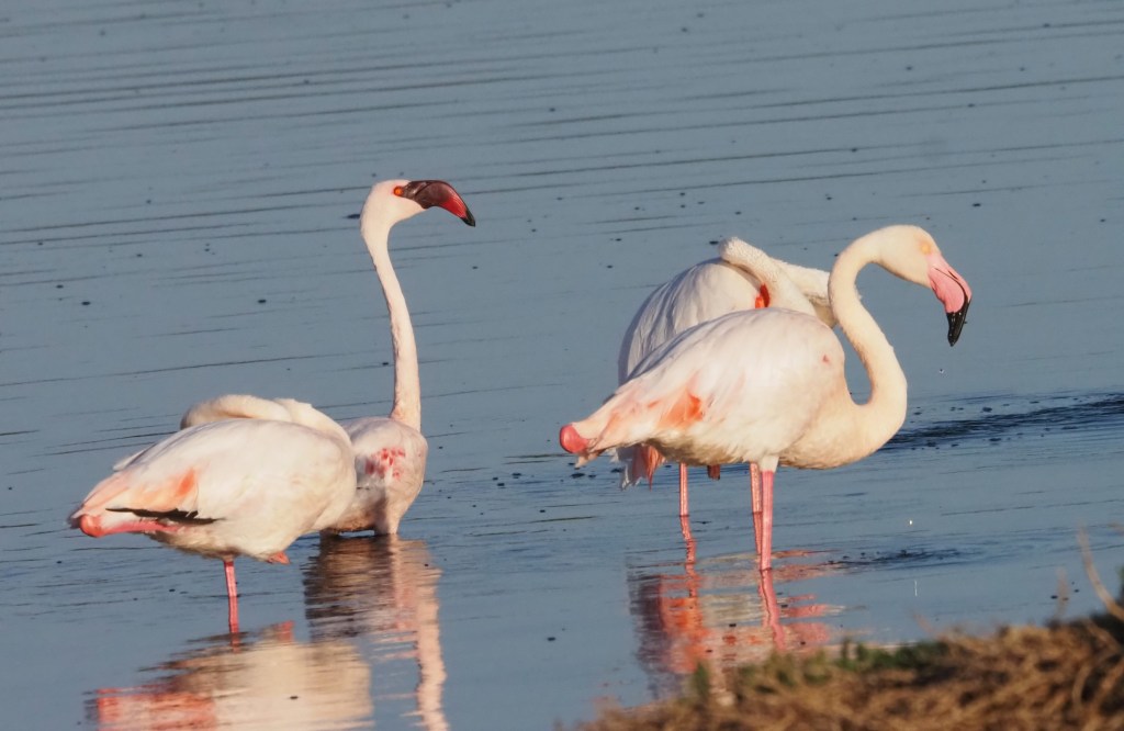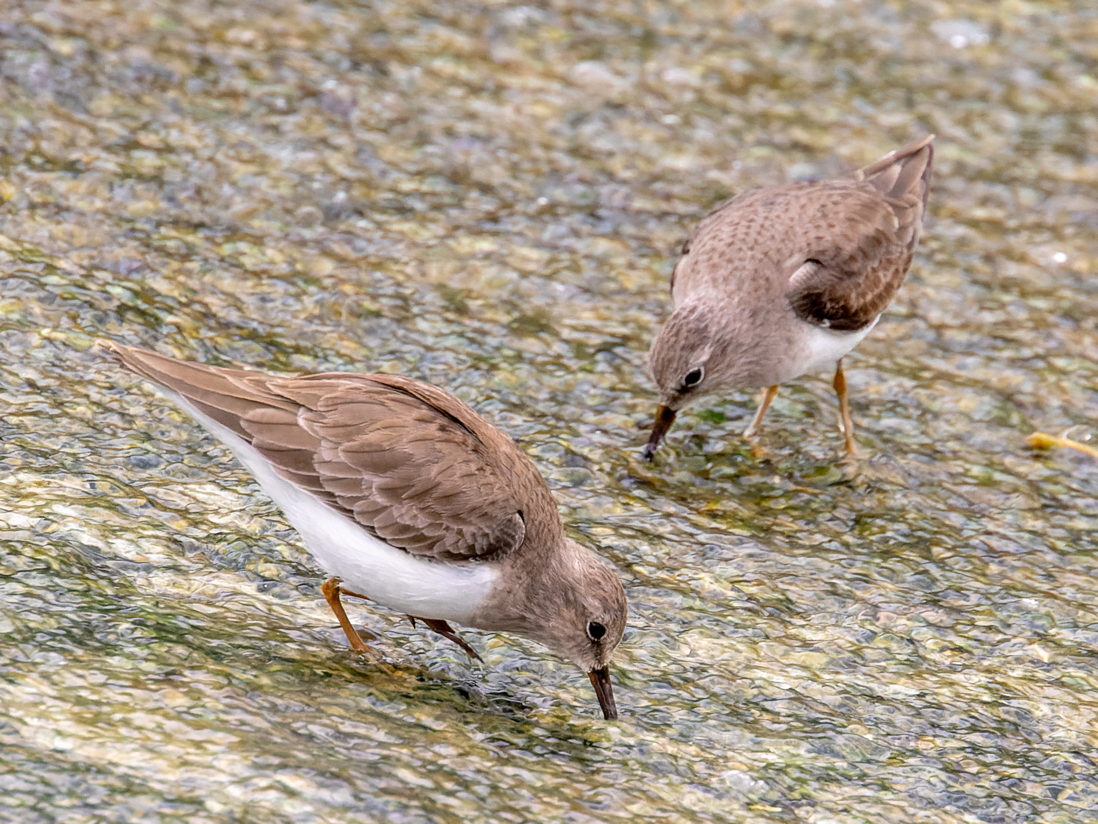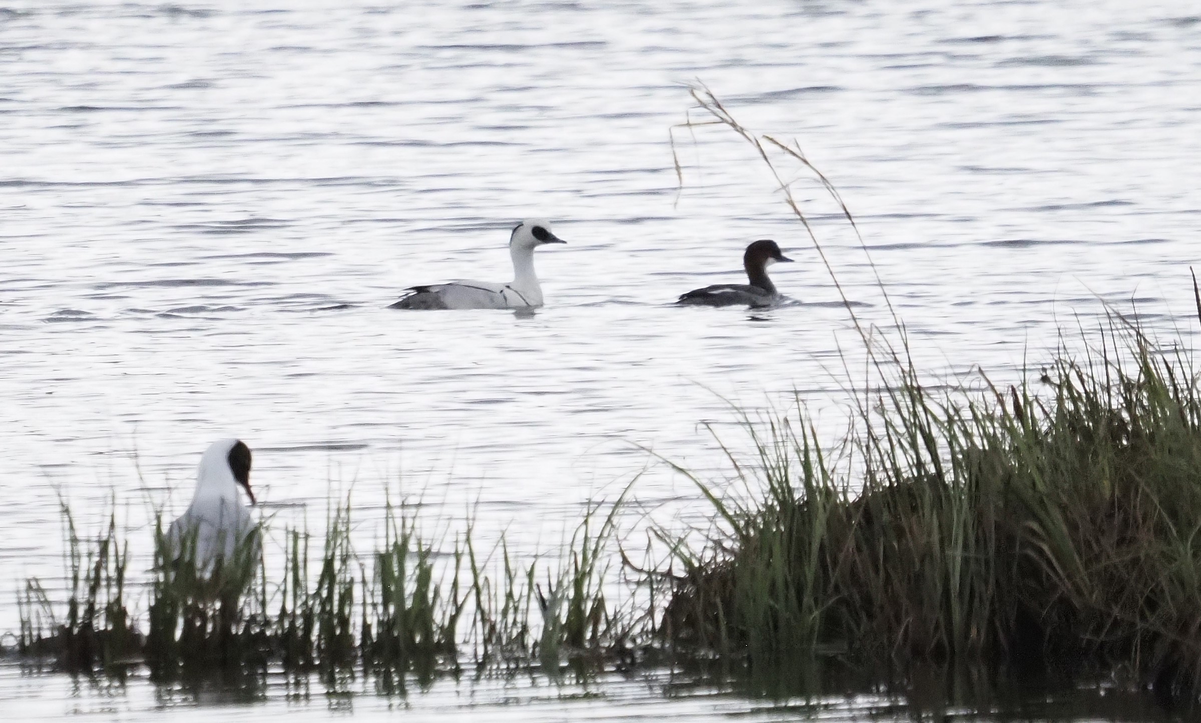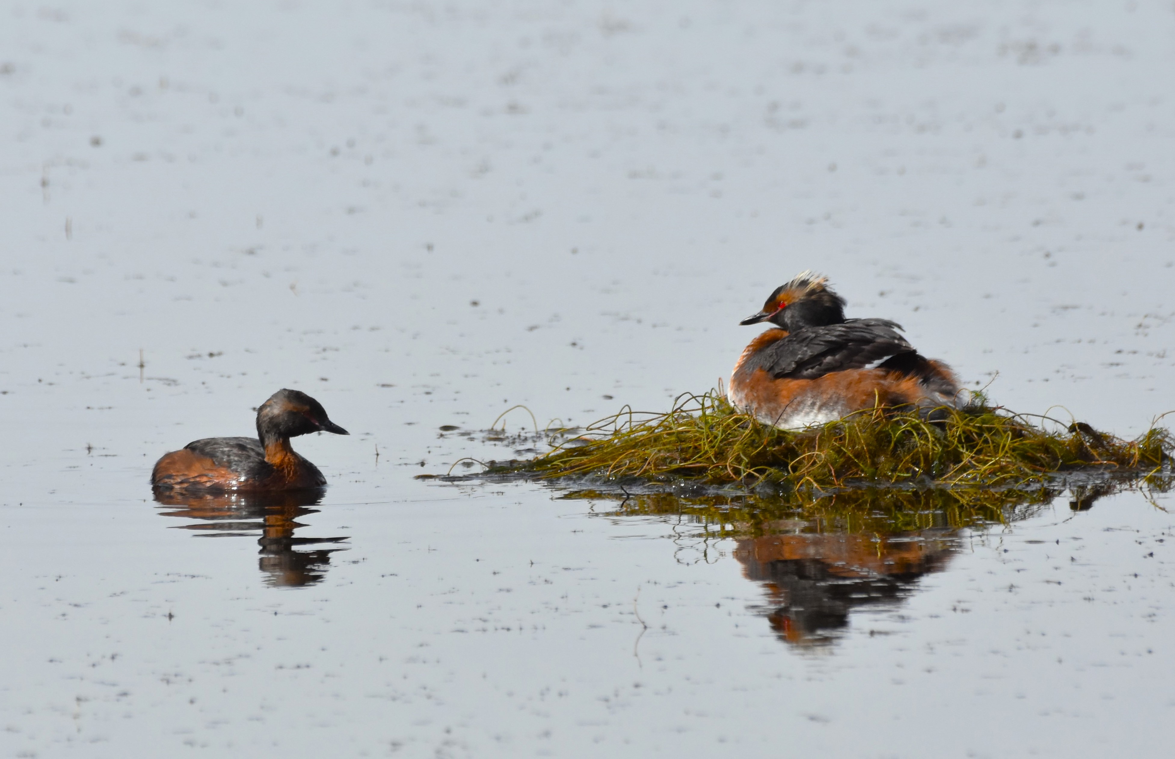 Encara assimilant el bon número d’ocells vistos anem a un petit llac interior on veiem diversos nius i llocades de cabussons orelluts lluint espectaculars plomatge nupcials. Un grapat de petits i nerviosos limícoles es mouen molt a prop de la llera, són escuraflascons bec-fins, les femelles encara amb els seus plomatges lluents, ja que en aquest gènere els mascles llueixen colors molt més discrets i apagats que les femelles. Tot intentant fotografiar els escuraflascons s’escolten i veuen petits estols de passerells gola-negres.