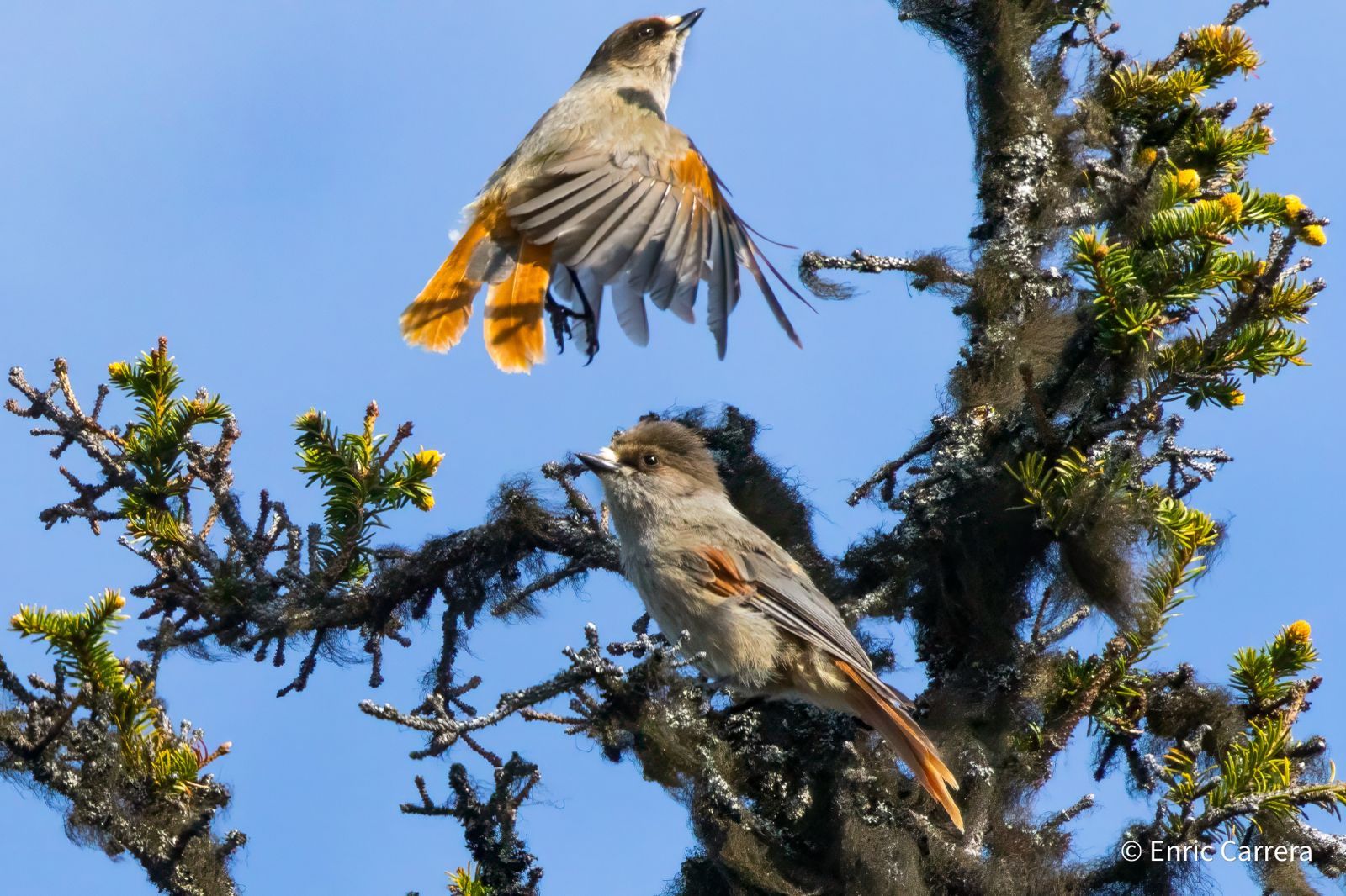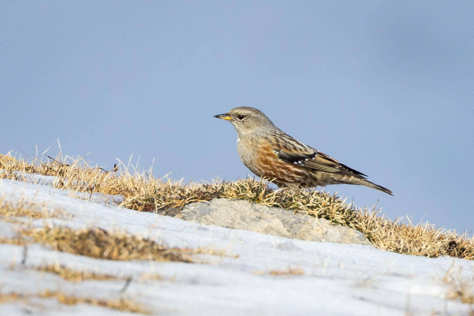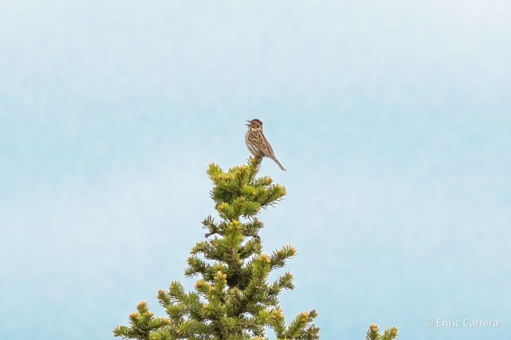 Tot just després de travessar una central d’aigües termals, arribem a una plana de prats on un enfeinat mascle de sit blanc creua volant la carretera. Emocionats aturem el vehicle i després d’una breu espera, veiem un parella d’aquest emberízid contínuament recollint menjar per dur al niu.