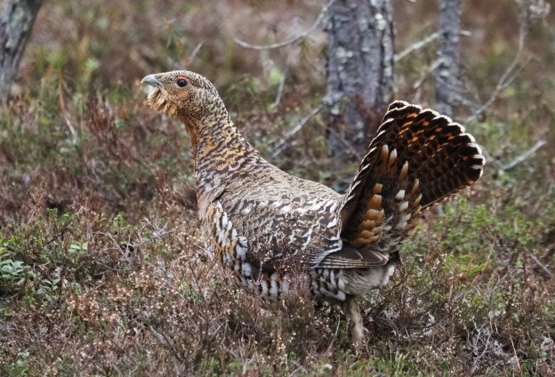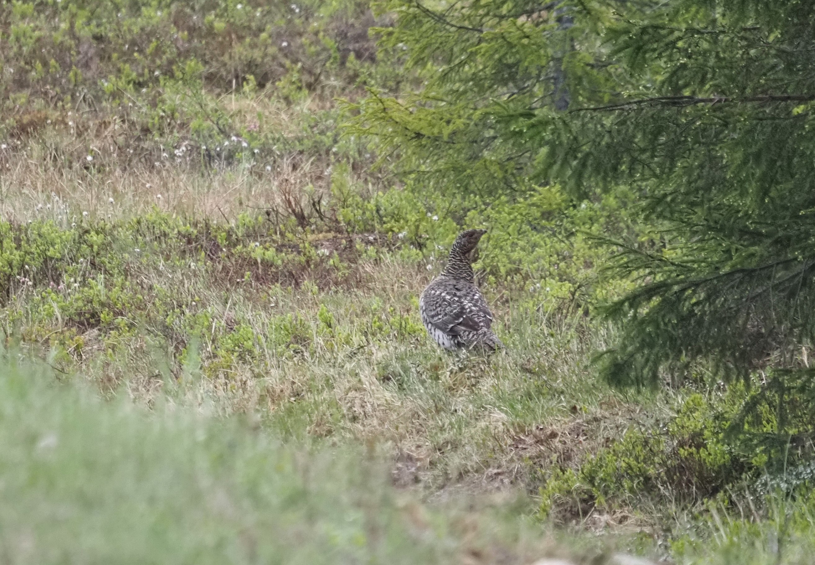 Continuem voltant el llac afegint a la llista ànecs negres, alguns amb nombroses llocades. Al marge d’un prat detectem un femella de perdiu blanca amb pollets, amagant-se entre la vegetació però sempre alerta i protegint la seva descendència.