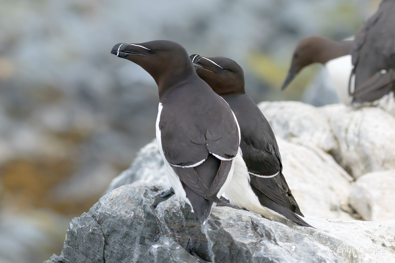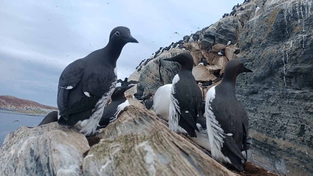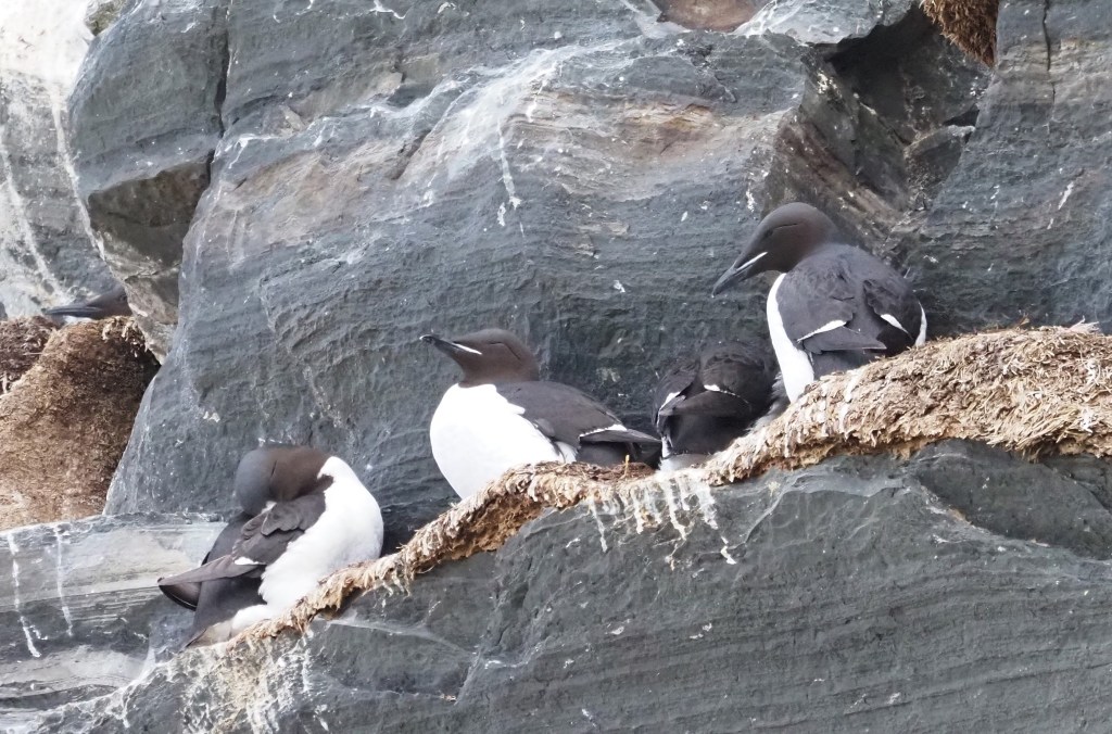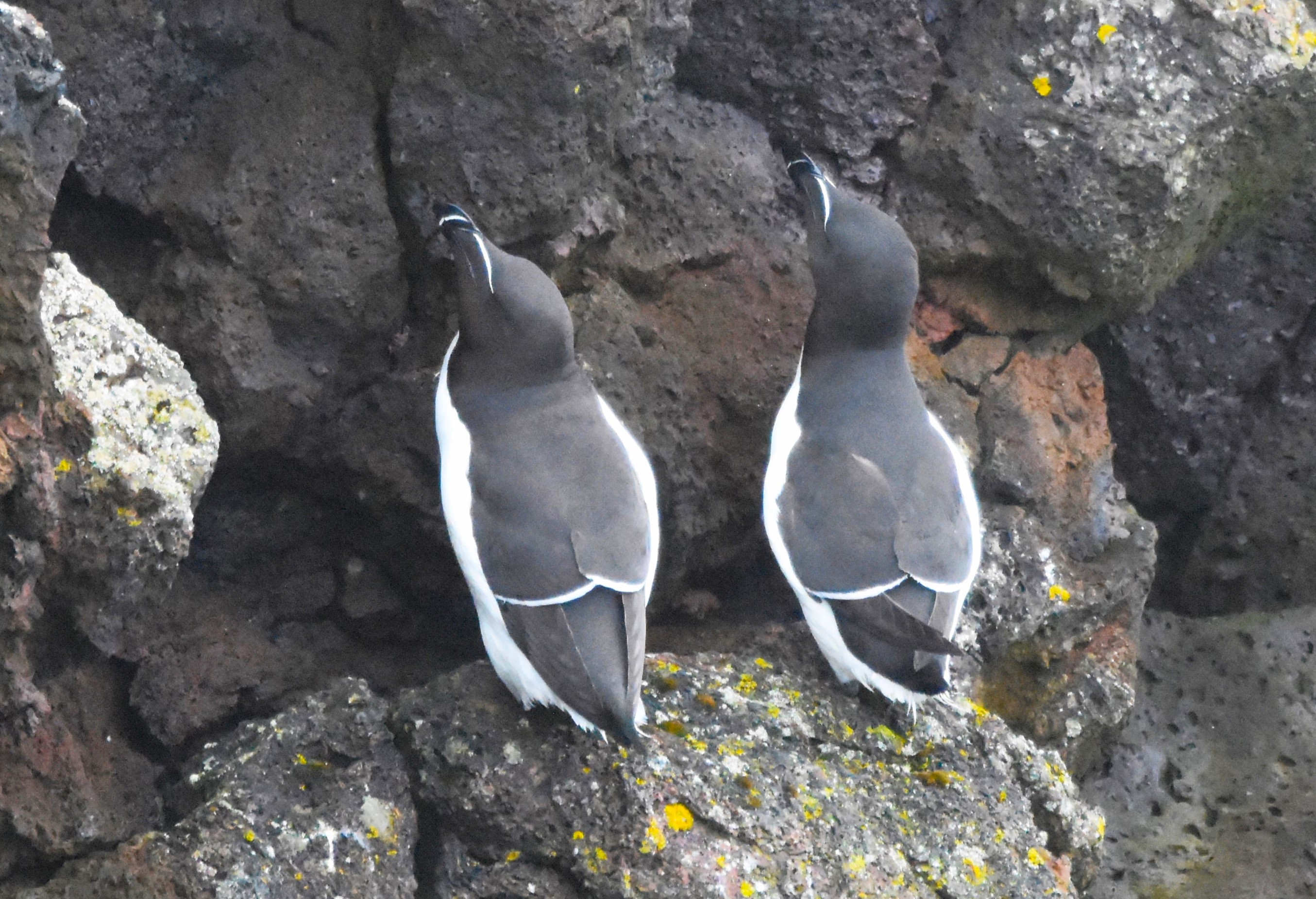 De sobte ja no tenim fred ni sembla que el plugim ens pugui xopar. Arribem als penya-segats, a on una quantitat ingent de nius de gavinetes tres-dits, gavots, somorgollaries, algunes frarets, corbs marins emplomallats atlàntics ens esperen i, mirant en detall, trobem unes quantes parelles de somorgollaries de Brünnich. Les costes d’Islàndia constitueixen una de les principals zones de nidificació per diferents espècies d’àlcids, en especial per al gavot, que concentra prop del 50% de la seva població mundial en aquesta illa.