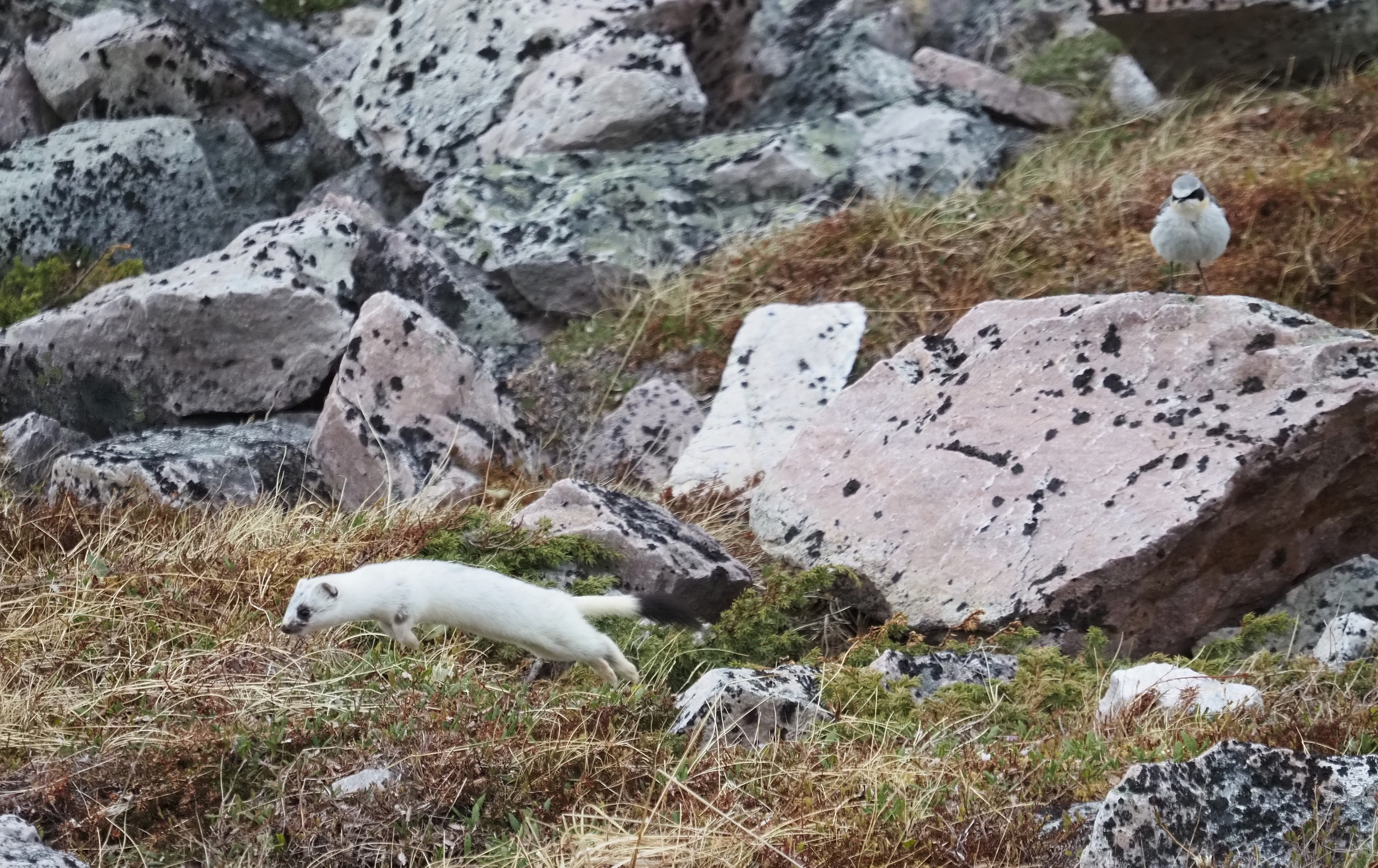Després d’un bon esmorzar visitem una de les zones humides properes a la capital del país. Ràpidament, entremig de grans estols detectem una oca de les neus, tant blanca com inactiva ja que va restar descansant tot el matí, haurà tingut una nit moguda. Aquí, dos dels ànecs més comuns són l’èider comú i el morell de plomall. Els prats estan ocupats per una gran quantitat de daurades grosses i becadells. Escanejant les vores veiem un bon grup de limícoles entre els que destaquen remena-rocs i territs foscos. Entre gavians de potes roses, gavinots, gavines rialleres i gavians foscos, veiem el primer gavinot hiperbori del viatge. A les zones inundables també es veuen calàbries petites i becs de serra mitjans. El passeriforme més abundant és el tord ala-roig de la subespècie coburni, al qual només nidifica a les illes Faroe i a Islàndia, i uns quants d’ells ens van fer més entretingut el matí amb els seus continus viatges per agafar cucs de terra i fruits per alimentar els famolencs pollets. Prenent el sol veiem les primeres foques comunes del viatge.