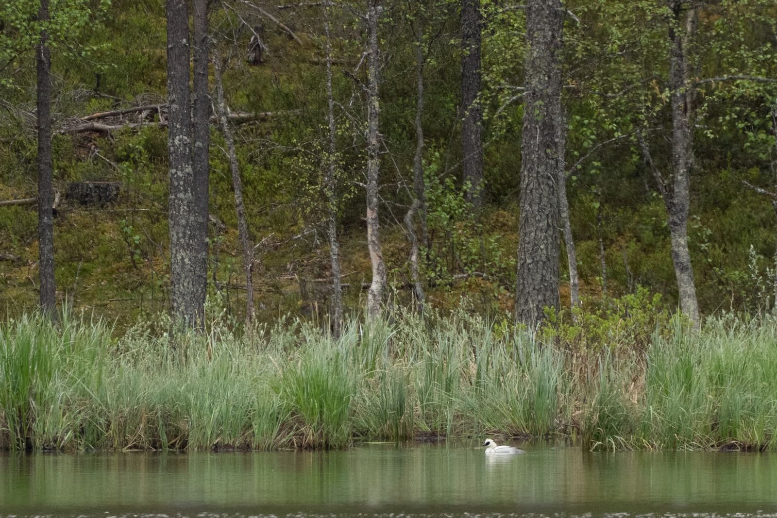 Arreu veiem grups familiars d’ànecs, cabussons orelluts i totes dues espècies de calàbries. Decidim visitar el riu Laxá per mirar de buscar alguna femella d’ànec arlequí, curiosa anàtida que cria a rius d’aigües netes i ràpides. Tot i la presència de pescadors de truites i salmons, una confiada femella restava tranquil·lament prenent el sol sobre un pedra.