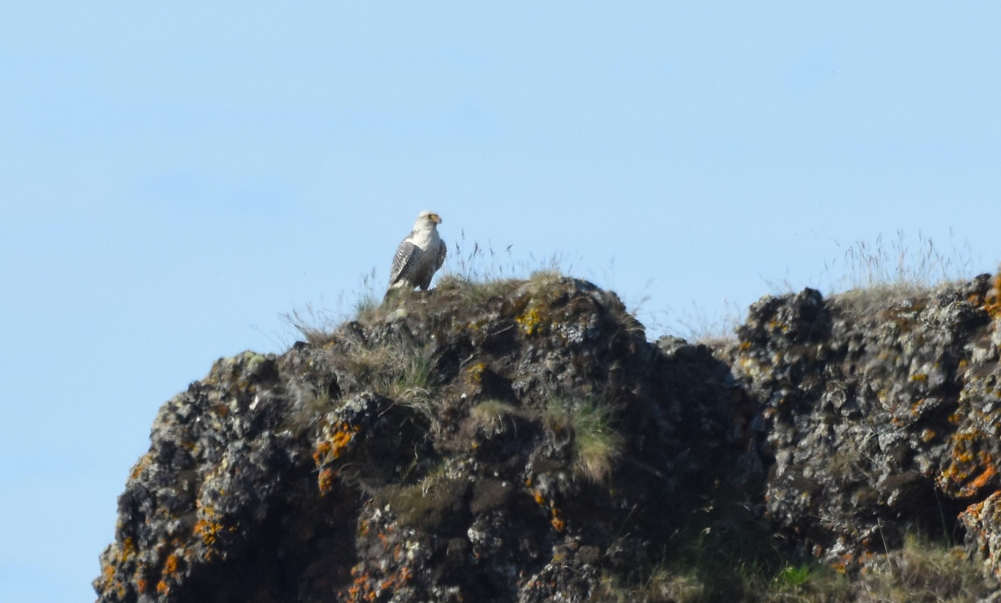 Fem aturada i breu visita a paisatges turístics com Þjóðvegur on per sorpresa i alertats pels crits d’alarma de les daurades grosses, veiem un grifó perseguint un segon falcònid el qual no arribem a temps de poder identificar.