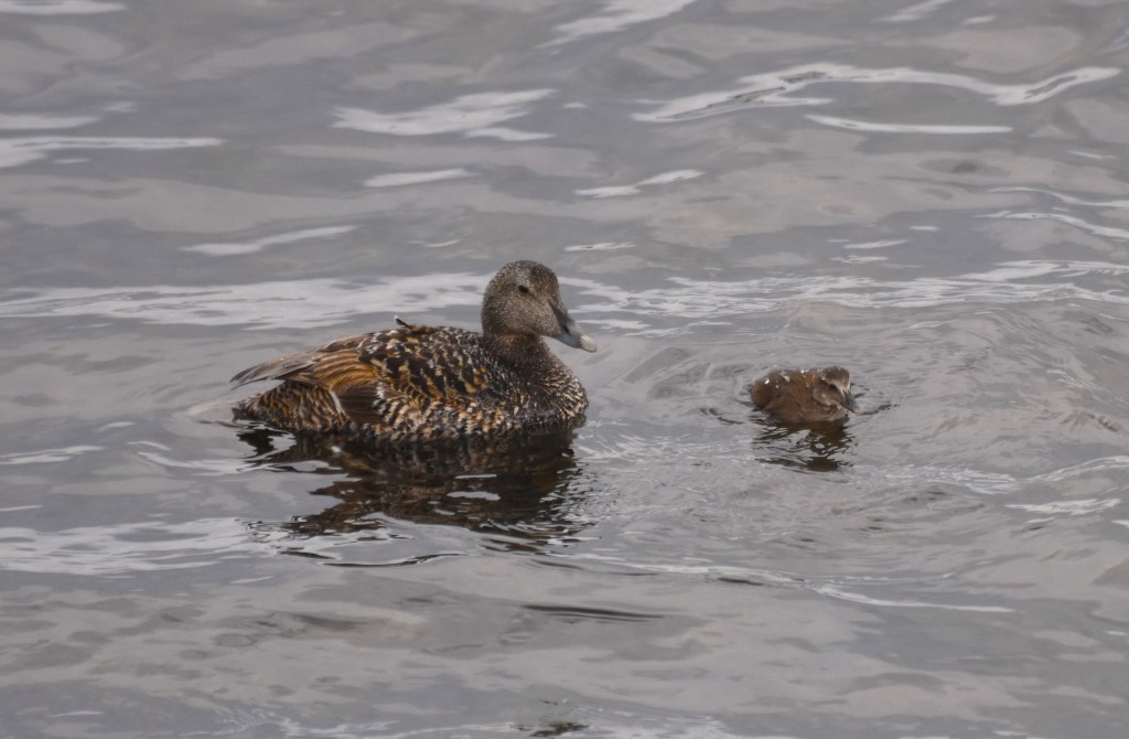 Tal com ens anem apropant a la zona on restarem 2 dies, comencem a notar una pujada en la força del vent, un aire gèlid que no impedeix que les badies estiguin plenes de fulmars, somorgollaires alablancs i incomptables èiders, amb els mascles ja agrupats deixant les tasques de cria dels pollets a les sacrificades femelles.