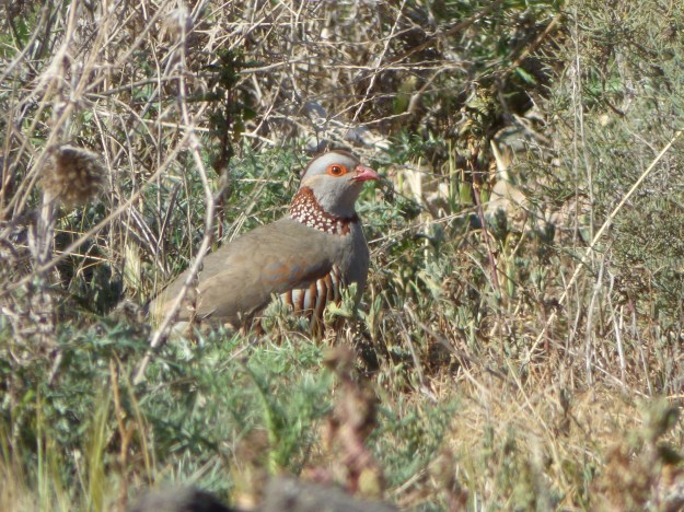 Barbary Partridge (Alectoris barbara) delighted with great views, being one of the most celebrated birds by all the group. Image by Carles Oliver