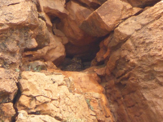 We faced to Marrakech. No traffic in the road so we did some miles before stopping and enjoying a good lunch with wonderful views on the lower Atlas mountains. Once back to the road, our next stop was to explore the highest part of the Atlas. When going to Oukaïmeden we were missing Alpine Choughs due to the unexpected high temperatures. Now we were stopping to check for them. But never found them! Instead we got 2 Red-billed Choughs chasing 1 Long-legged Buzzard along the valley. The raptor went to look for shelter in the cliffs and we were surprised to see that the bird was actually landing on its nest! We had good views on the Long-legged Buzzards by the scope. We scanned for Alpine Chough. But nothing. 1 Common Raven was noted before coming back to the minibus.