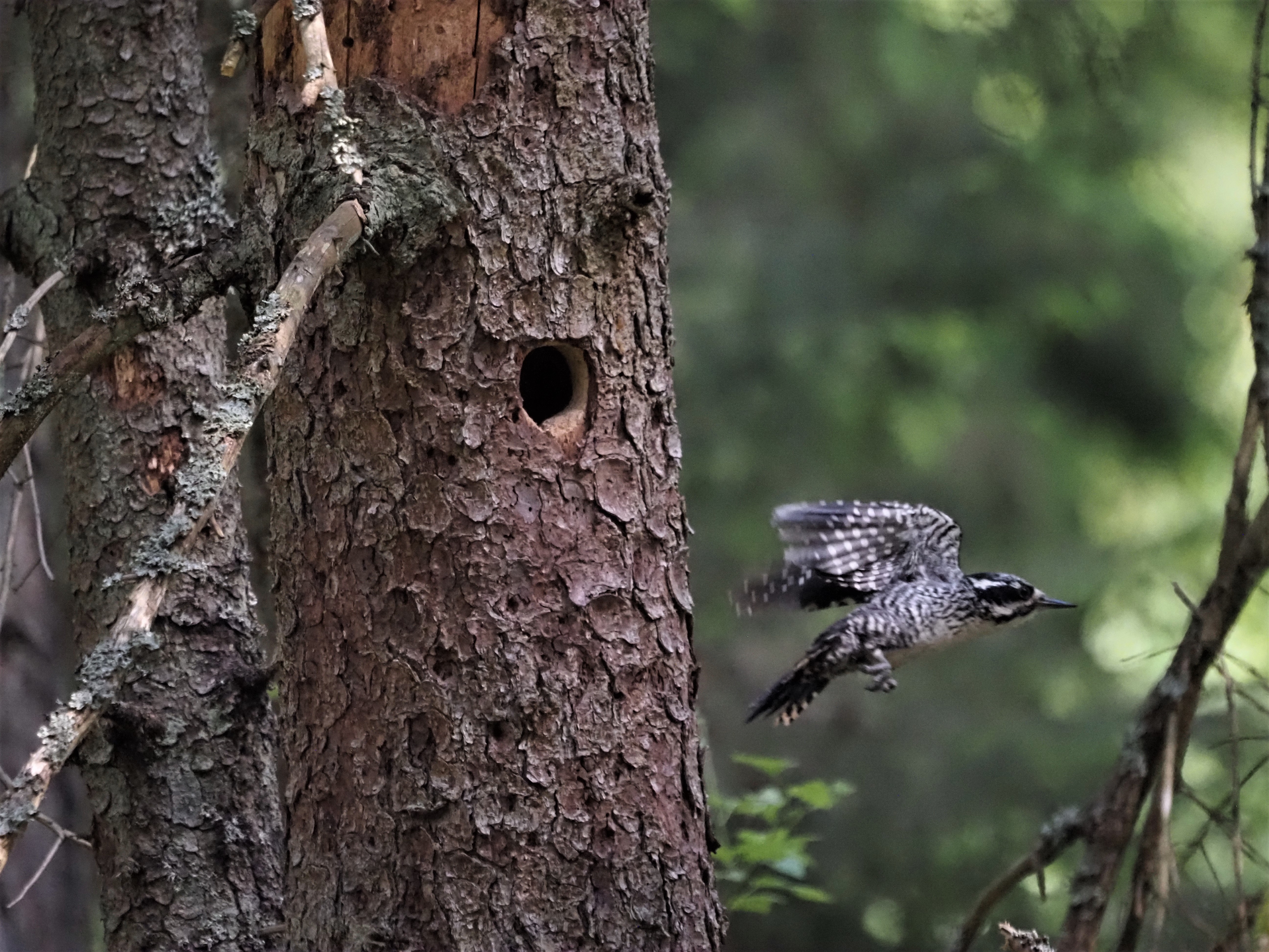 For over 45 minutes, we enjoyed amazing views on the pair of Three-toed’s while they were getting in and out the whole and interacting in the trees around. The forest around was full of birds, and here we got Tree Pipits, Willow Tits but also the only Eurasian Siskins of the trip. In the distance, a Black Woodpecker was calling over and over. It was definately time to move away. We took advantage of the calling Black Woodpecker and after a short scanning we had the bird moving in patch of Scotch Pines before we had a magnificent view of the bird flying across the road before stopping a few seconds in a tree nearby.