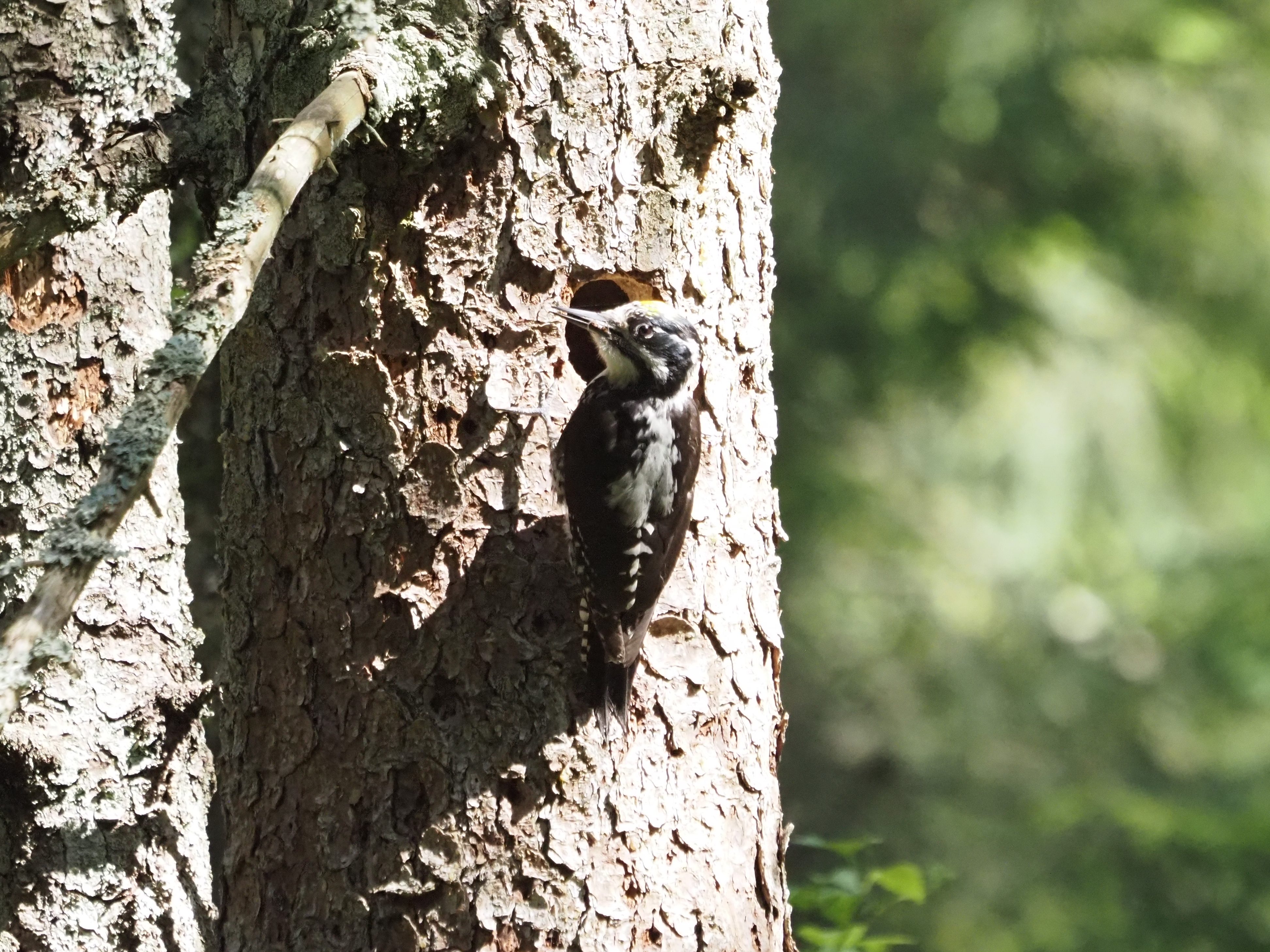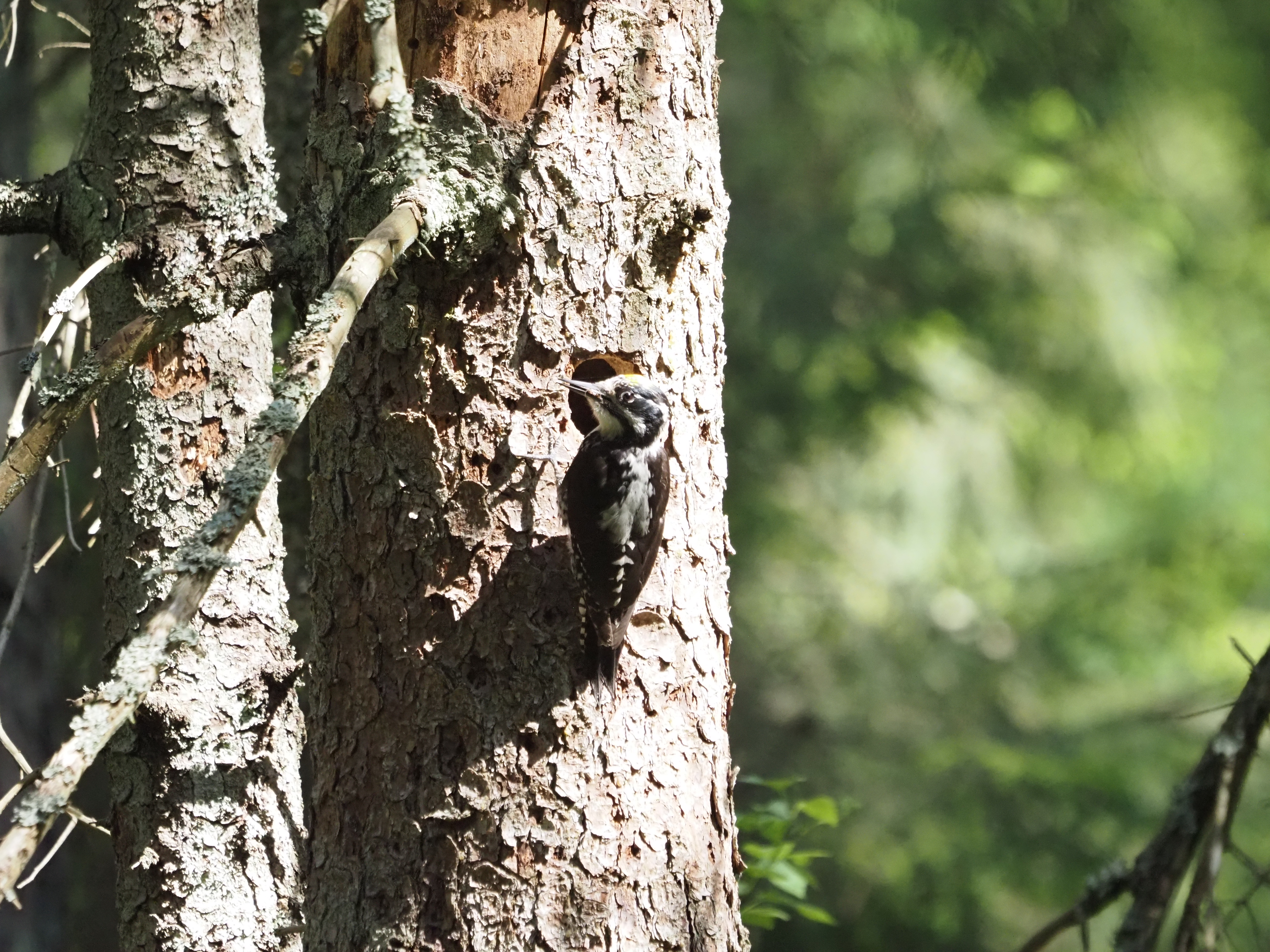 The heat was already noticeable when we arrived to a small patch of spruce. There, a nest of Eurasian Three-toed Woodpecker was waiting for us. Only a short wait was necessary before one of the adults came to the next, and during the next half and hour we all enjoyed again with the intimate views of the pair of this rather small woodpecker while coming to feed their young and marking the territory around the hole.