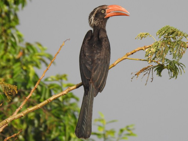 Early morning start to explore a patch of jungle that connects with one of the largest patches of continous forest in Africa, getting well inside Congo. During the morning we contacted with a number of interesting species, adding to the tour list Crested Malimbe, Xavier’s Greenbul, Blue Malkoha, the very impressive Black-casqued Wattled Horbill, the small Red-billed Dwarf Hornbill, Black-billed Barbet, Jameson’s Wattle-eye, Black-bellied Seedcracker, Yellow-whiskered Greenbul. A fast glimpse on a Fire-crested Alethe that left the group wanting more of it, and trakking a group of Red-tailed Monkeys led us to find a always wonderful Western Nicator.
