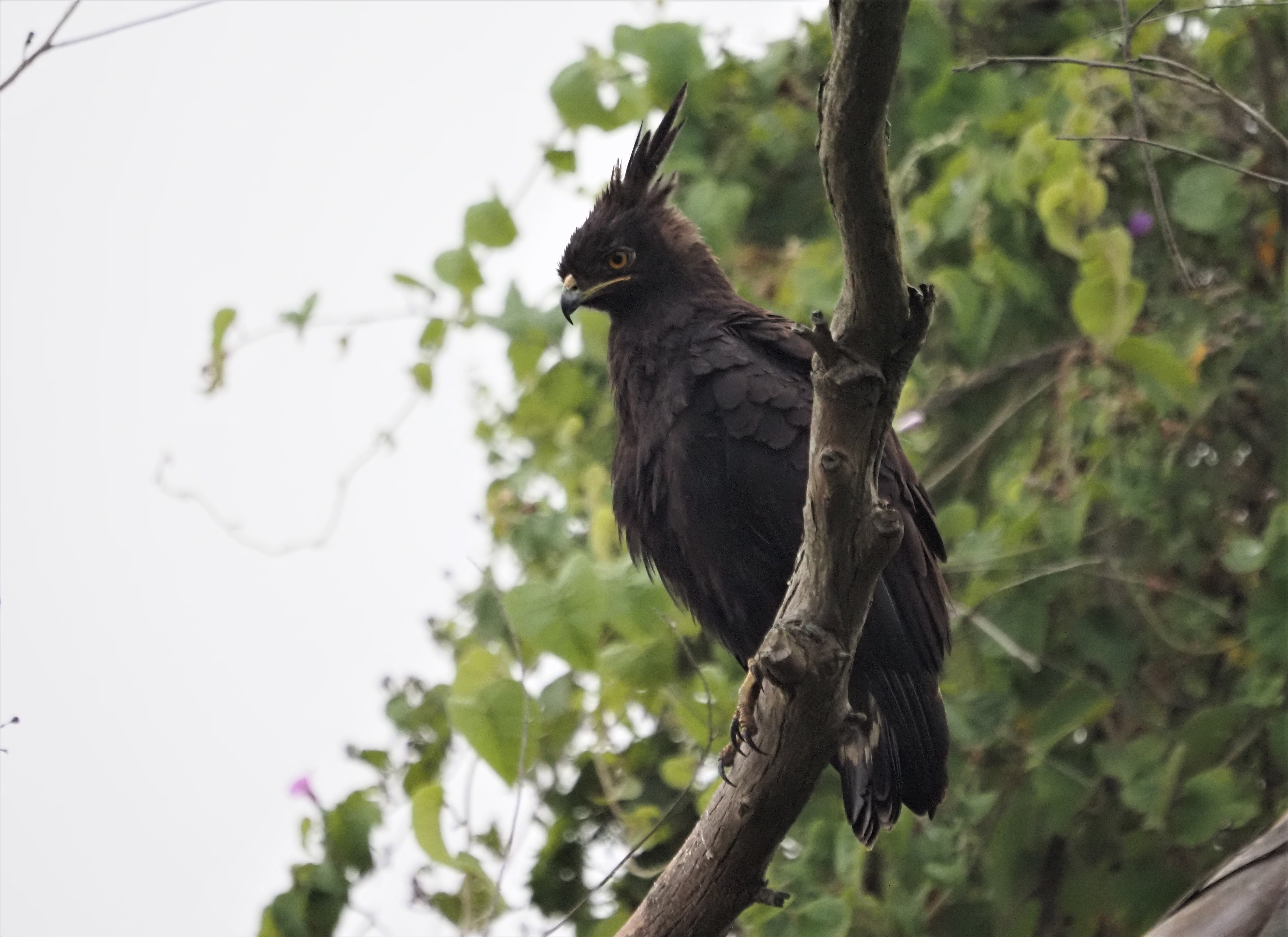 This road keeps going up the slopes for several miles, and a flock of Dusky Tits was a milestone for another stop. Here we didn’ have that much out of some lovely Brown-capped Weavers, the first Grey-throated Barbets of the trip and an impressive African Crowned Eagle perched in a distant branch! This sight was among the top 3 moments of the tour according to our guests. The views on the scope of this massive bird of prey made us think about all the Black-and-White guezera Monkeys in the area, and we counted ourselves lucky to be big enough to not be in its menu…