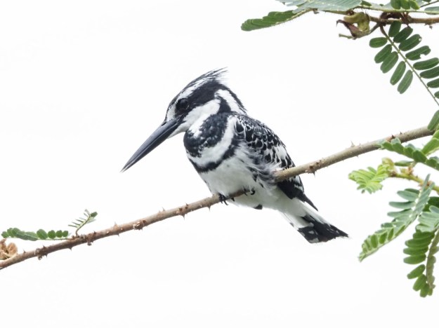 Our first birding of the tour was in the gardens of the accommodation, where we had good views on several species including the firsts of many Pied Kingfisher, Village Weaver, Red-chested Sunbird, Broad-billed Roller and Yellow-billed Stork. Here we also had a selection of Weavers including Slender-billed, Golden-backed and Yellow-baked. Long-crested Eagle was hunting in the hotel grounds, and Black-and-White Shrike Flycather and Lesser Honeyguide were seen around the cottages. The area around the lodge is basically a farming area, but there are still interesting remants of the original forest, so we were not surprised when a gorgeous, enormous Great Blue Turaco appeared right in front our eyes to give us one of the first unforgettable momments of the trip.