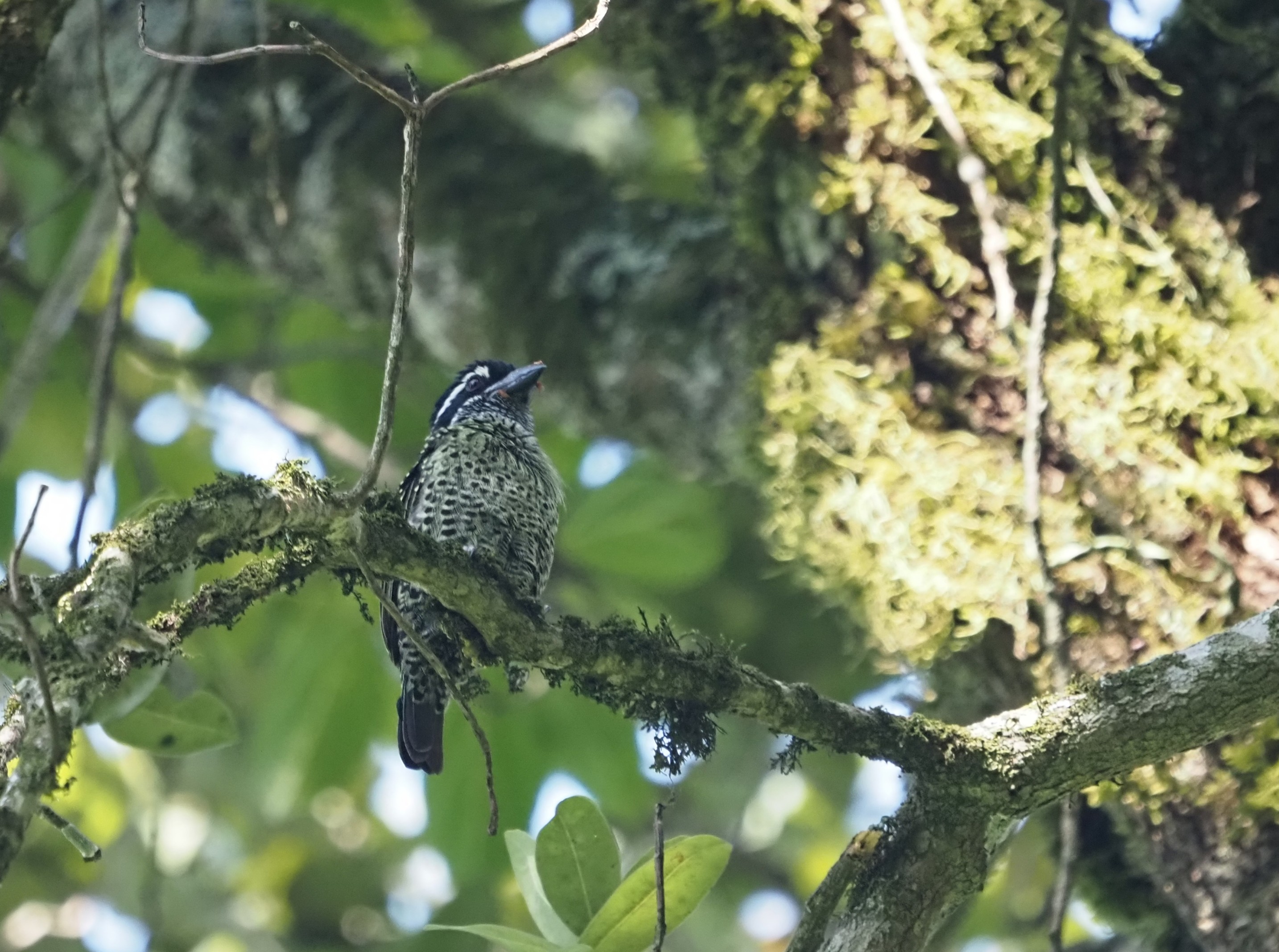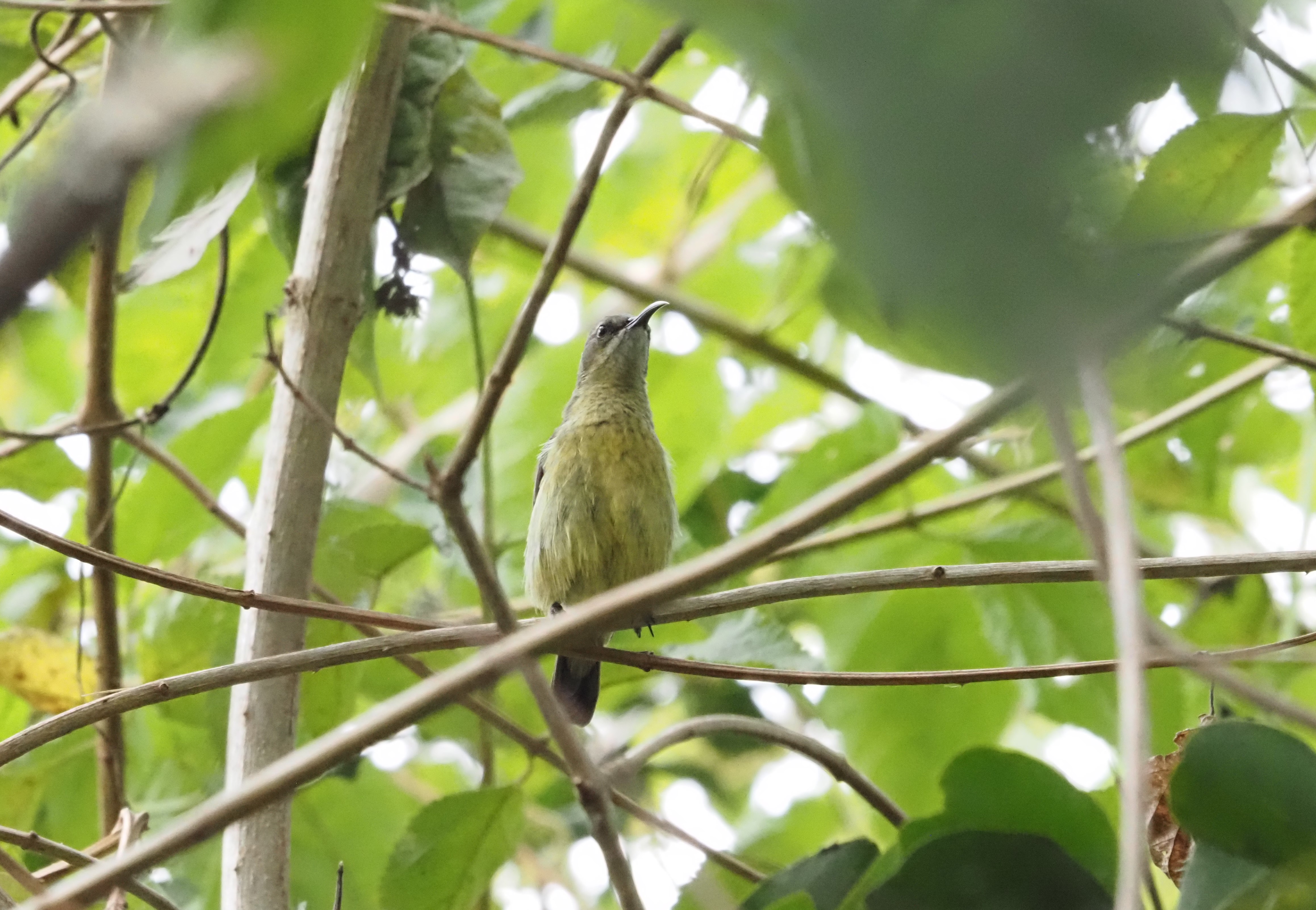 Further on in the forest, a visit to a clearing allowed us to get good views on both Sabine’s and Cassin’s Spinetails, both with a very limited range. When coming back to our van, another stop was mandatory as Dusky Long-tailed Cuckoo was calling in the forest. After a long waiting, we finally got some views on the bird as it crossed to track, and the sight had a warm welcome in the group as this is exremely shy bird that normally is reluctant to show out. Already close to our vehicle, a wonderful Chocolate-backed Kingsfisher was our very last discovery in the forest, giving a wonderful end an excellent morning.