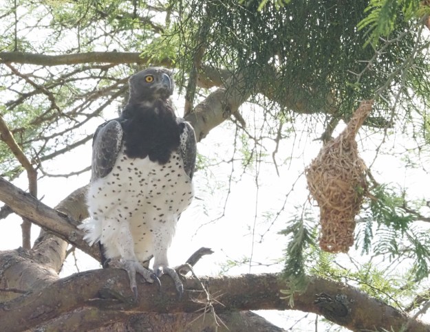 After a pair of hours of driving we arrived to the Queen Elisabeth National Park, crossing the Equador line that separates the Northern Hermisphere from the Southern. Only a few miles beyond, an impresive Martial Eagle perched by the road was the unforgettable welcome to the Southern Hemisphere!