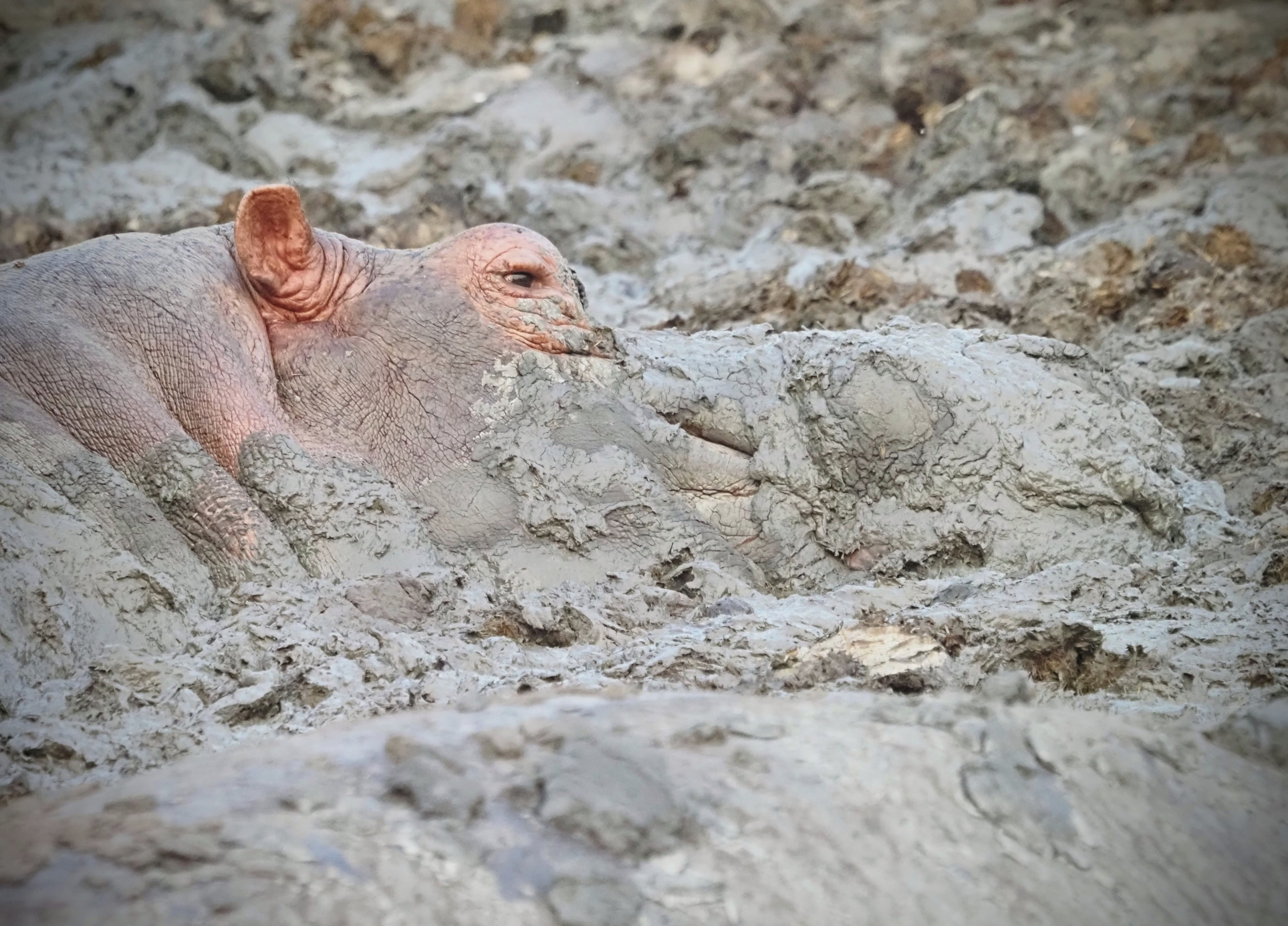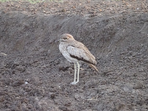 Rufous-naped Larks seemed common in the area this year, as were Grassland Pipits. A pair of Black-bellied Bustards were noted, and the scanning of small ponds finally produced an African Crake running above the back of a huge Hippopotamus that was almost totally inside a muddy corner.