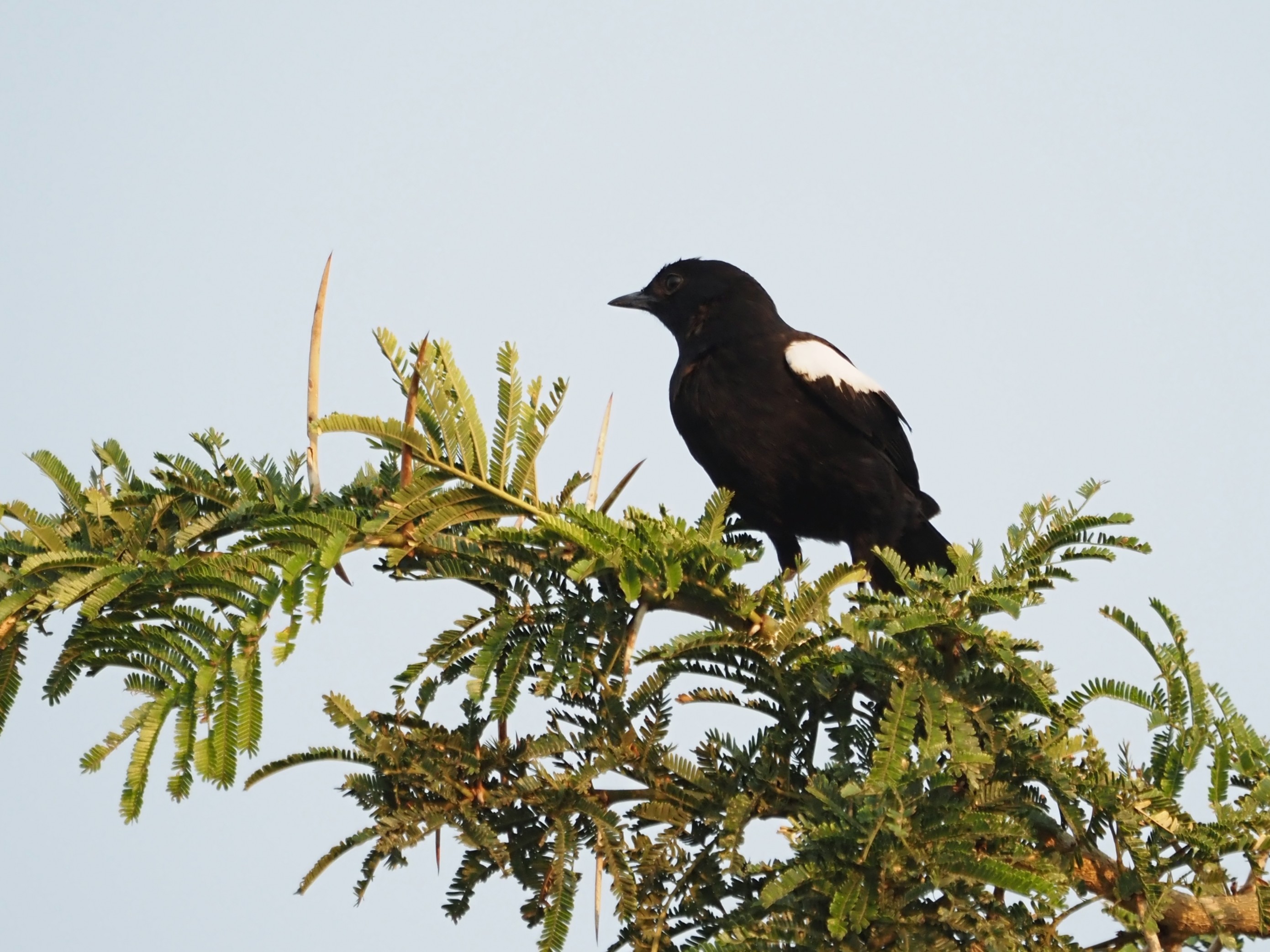 Contuining our driving among Uganda Kobs and Elephants we did get inside the National Park, exploring a small patch of grass which is great for larks. Soon we had good views on both Rufous-naped and Flappet Larks, but the best was still to common, as a White-tailed Lark just flew right to side of the van, providing excellent views to all the participants.