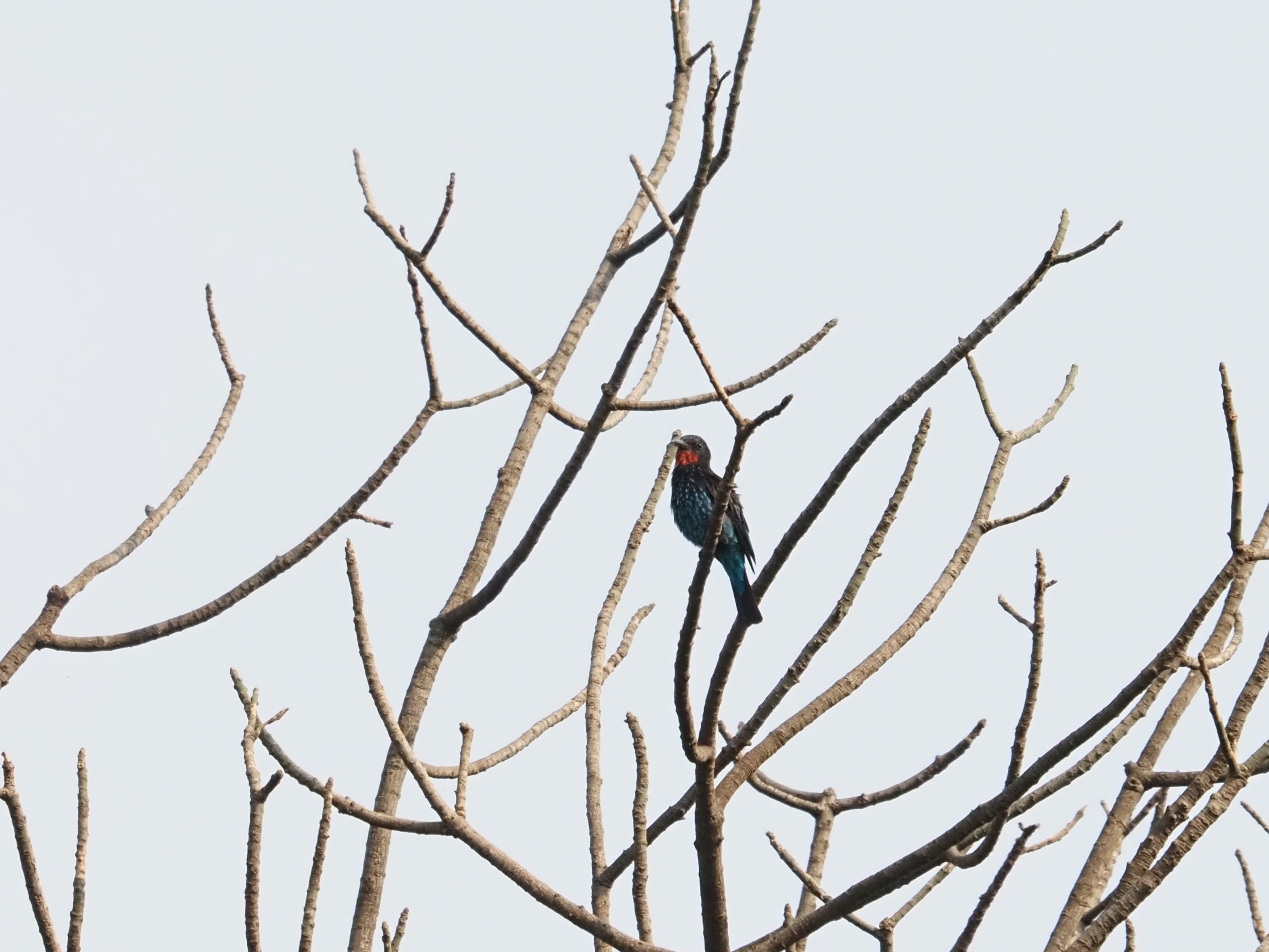 After a nice lunch and some rest we went back to the forest, where we had a short but nice selection of birds. A Dusky Turtle Dove showed up just when living our accommodation, allowing some shots. Beyond, we had our first Stülhmann’s Starling, and a few meters beyond we were lucky enough to enjoy a mixed flock of this rather scarce species along with 4 Shaper’s Starlings. A long fight was necessary in order to bring a Archer’s Robin Chat into the light, but even if we had good views on the bird, it left us wanting more of it! Another great bird appeared only a few minutes later, as three White-headed Wood-hoopoes came in flight to stop right beside us, with lot of loud calls, flikering and social activity between individuals, that soon disappeared back in the jungle. We still searched for more specialities, but the weather was quite cold and cloudy, and bird activity collapsed after 18:00. After some more time we decided to come to our accommodation, but not without an expected view of a male Purple-breasted Sunbird at close range was one of the highlights of the afternoon.
