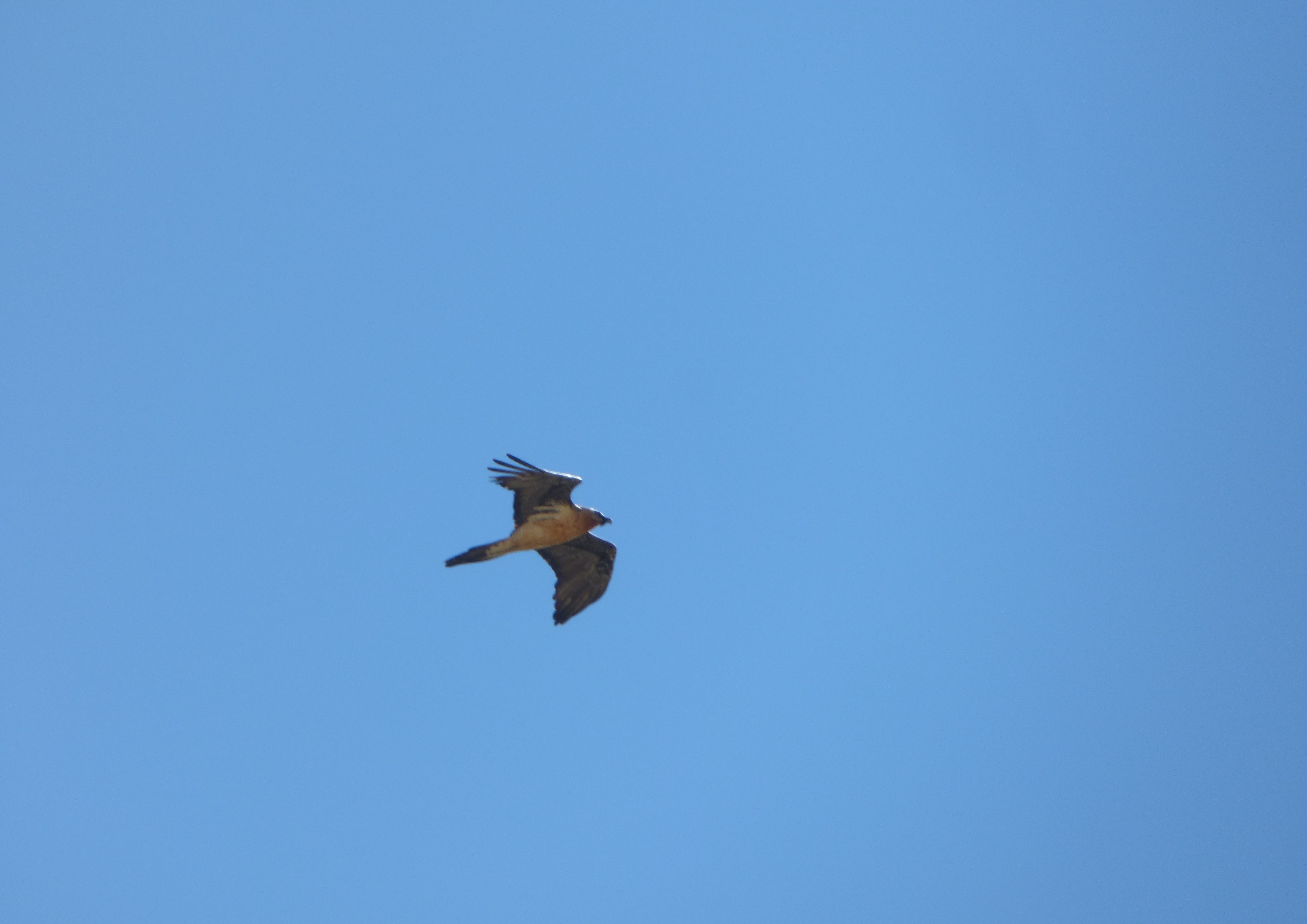 As we had time left in the day, we retraced our steps and returned to summit the lane at Coll de Pal – we had to stop quite soon on the way up due to an adult Lammergeier showing incredibly well by the van!! This bird gave us our best views yet and even landed on the scree a few hundred yards away – a definite highlight of the whole trip!!