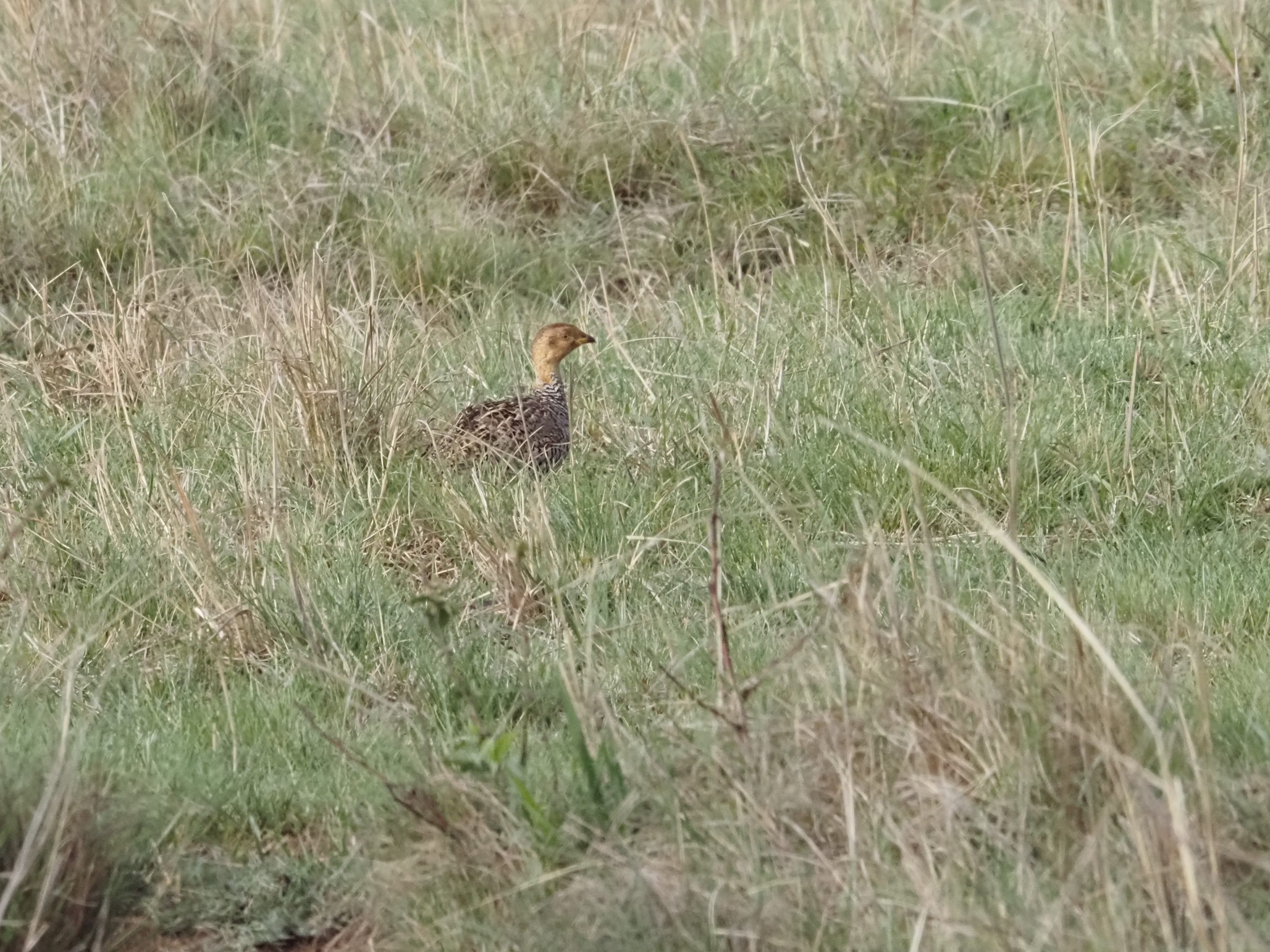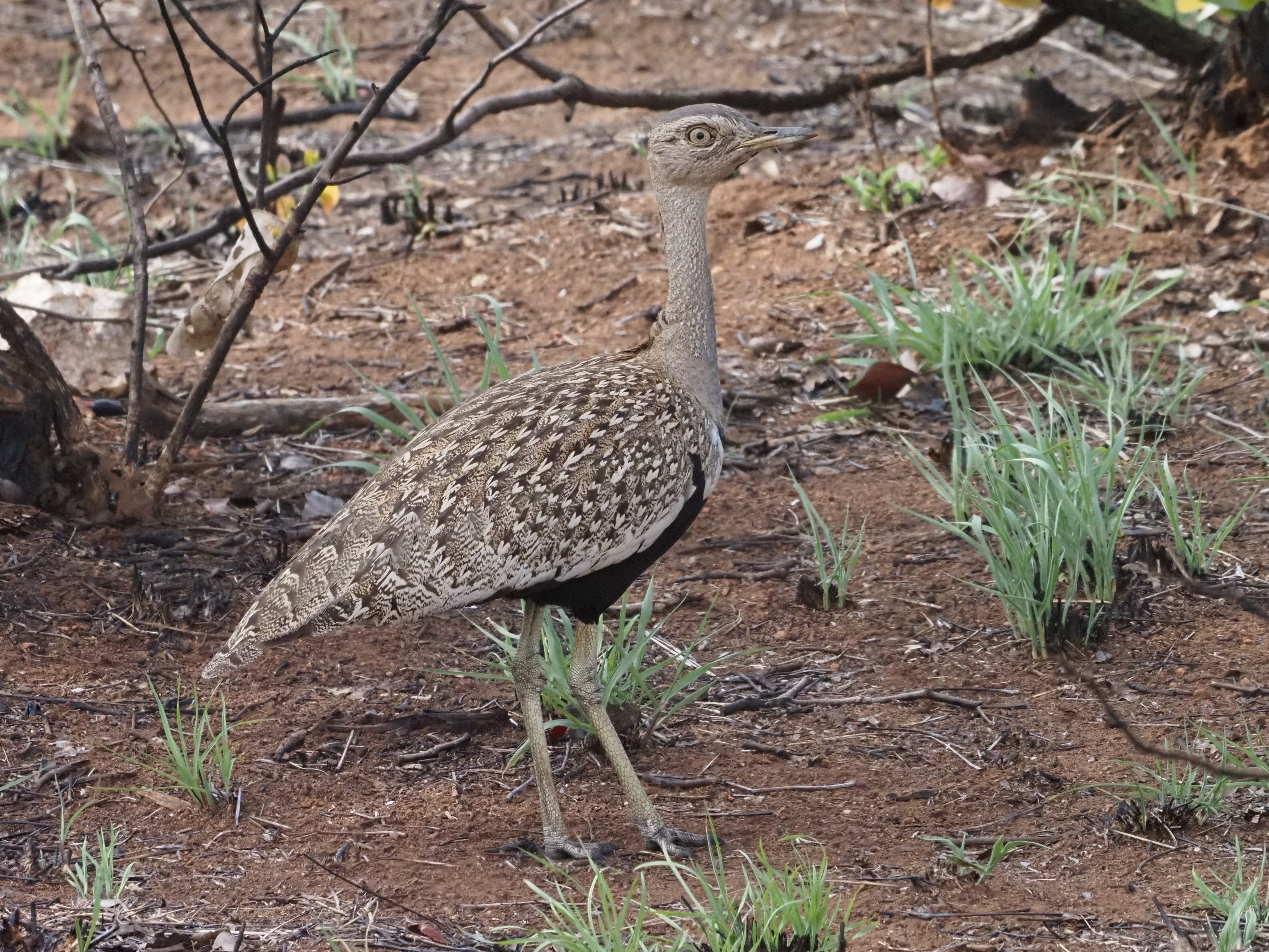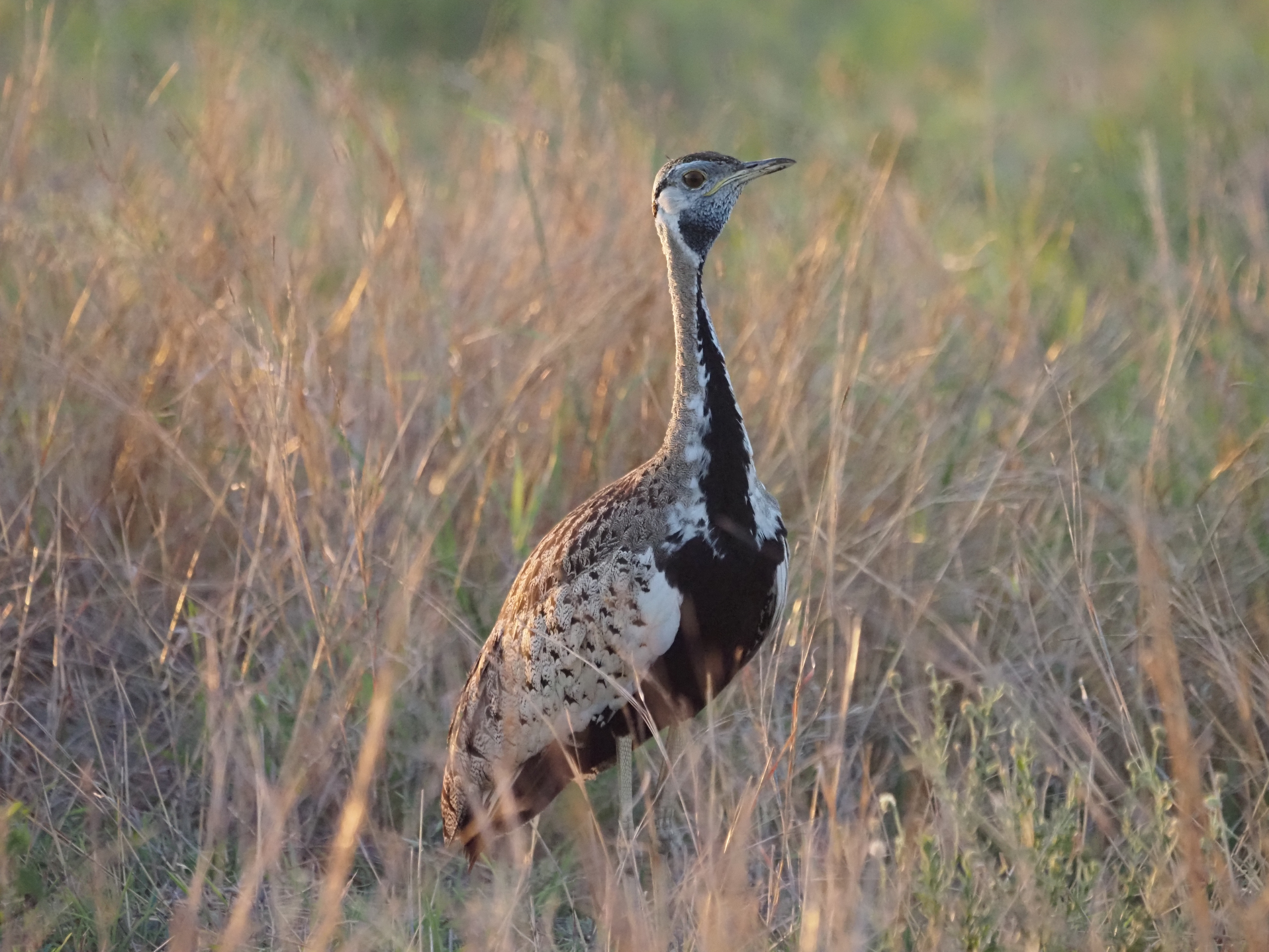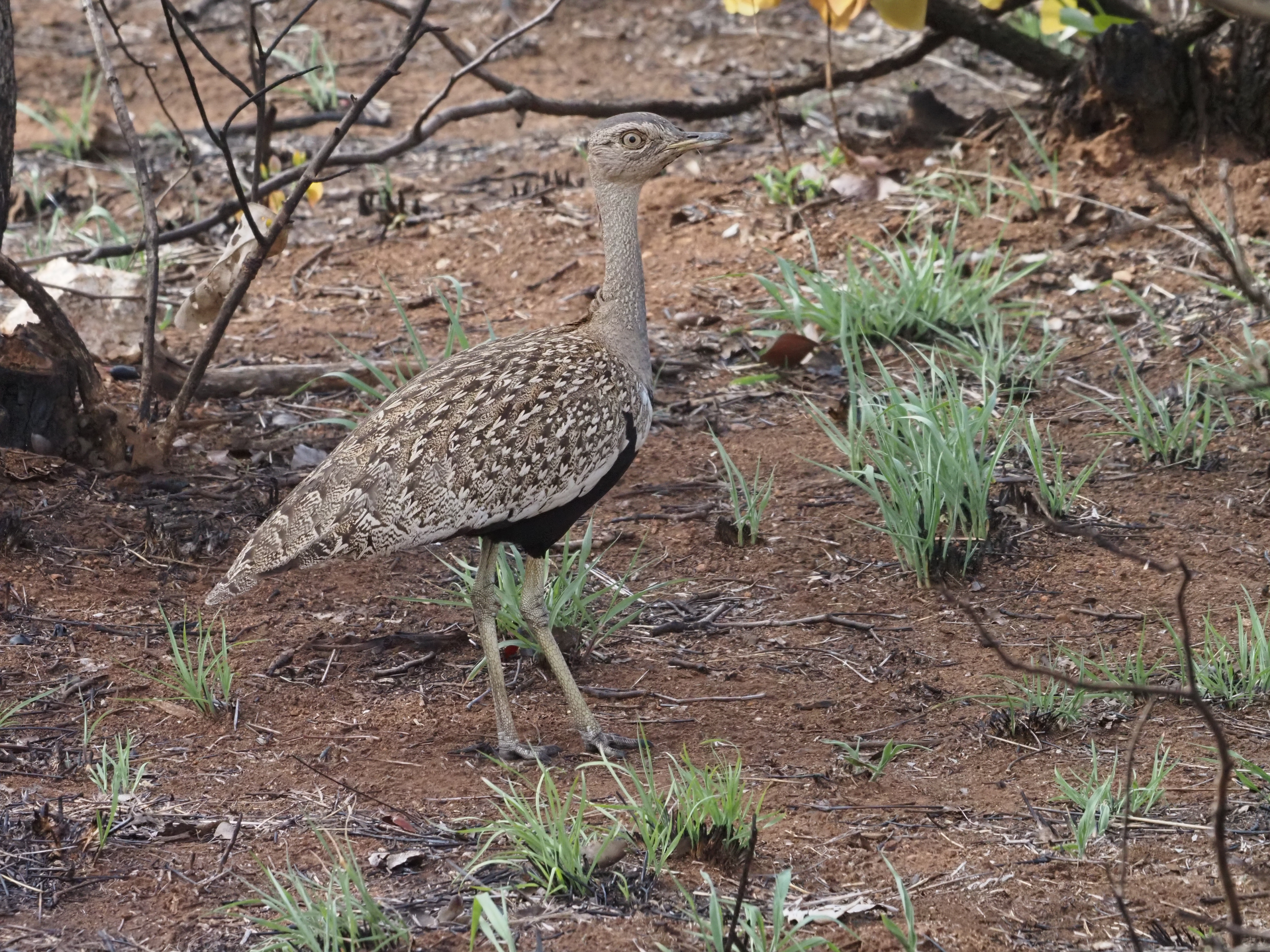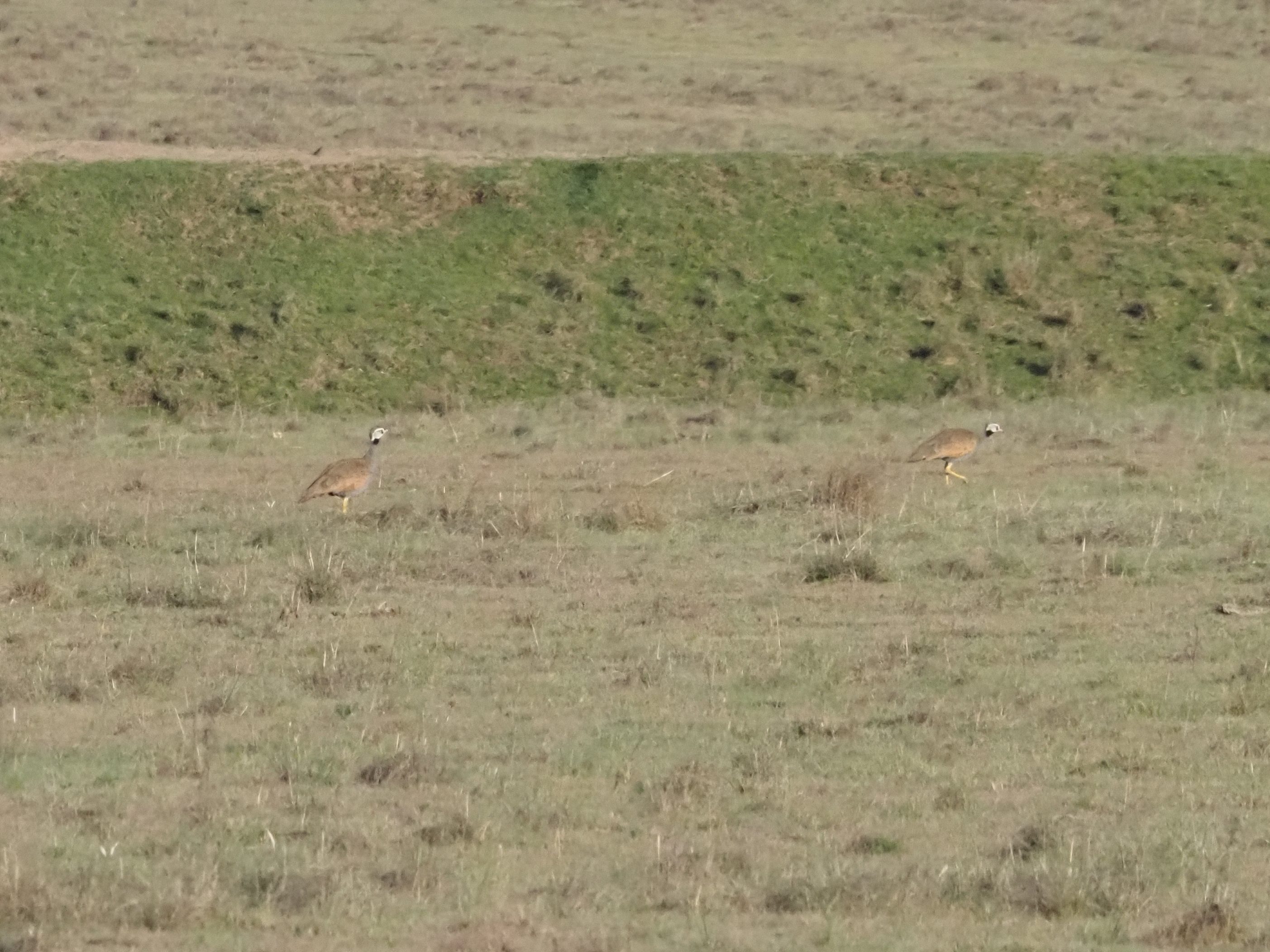 Back to the plains we started looking for some grasslands specialities, and soon we had good scope views on Denhman’s Bustards, but also the common Southern Ant-eating Chat. A fast stop was necessary to admire the often secretive Coqui Francolin feeding and walking in the grasslands, and not far from there we had good views with the scarce Orange-bellied Waxbills feeding in the short grass along with the much commoner Cape Longclaws. White-bellied Bustards, with an endemic (an endangered) race in Southern Africa, proved harder to find in the grasslands, but our perseverance was granted with excellent views on 2 males moving together only a few meters away from our vehicle..