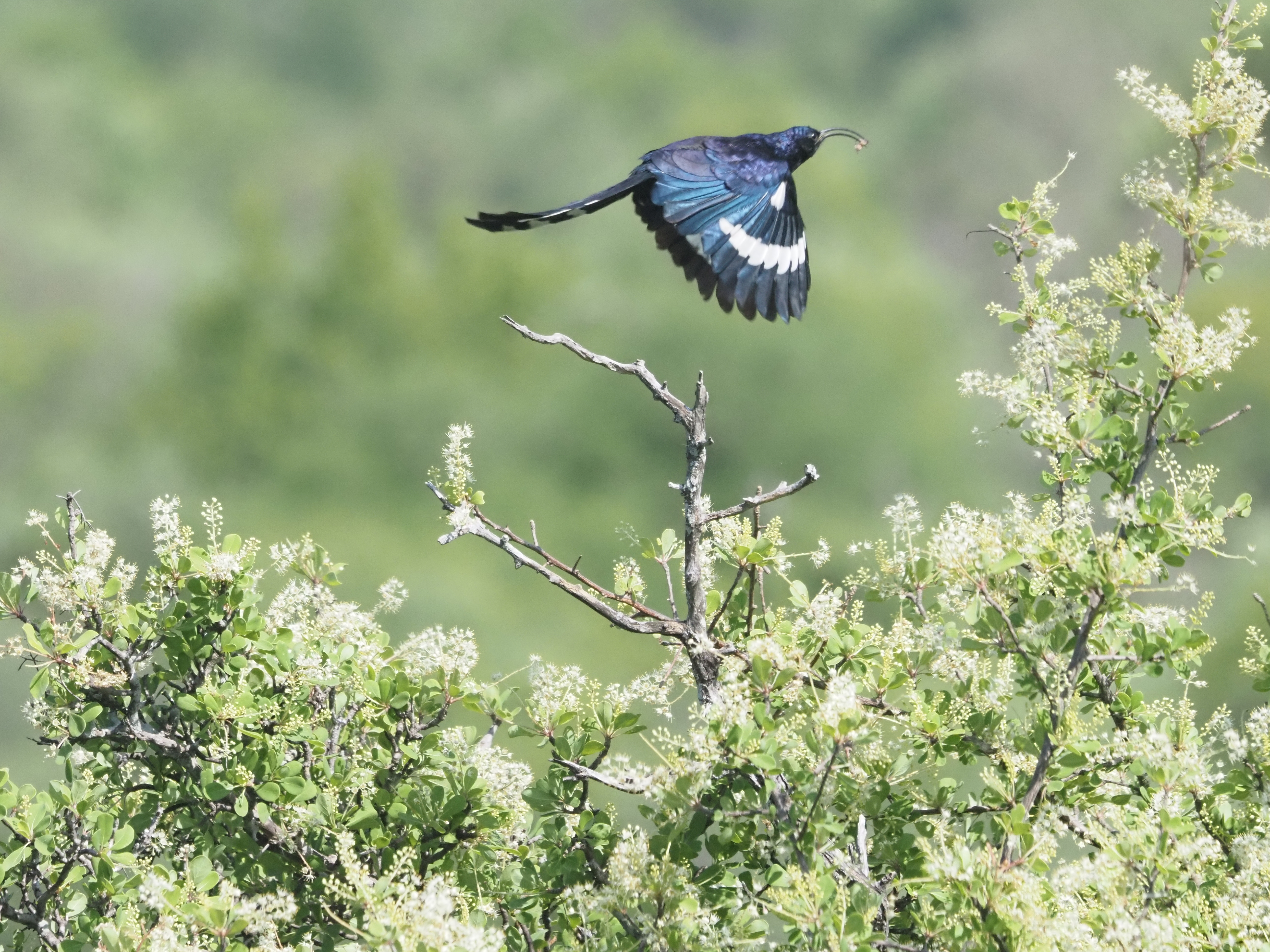 After the forest, we visited one of the few spots for Magpie Mannikin in the area. Just arrived, we got the first of many views on Red-faced Cisticola and Black-collared Barbet, as well as Grey-tit Flycatcher and Red-chested & Amethyst Sunbirds. The Mannikins proved to be way more difficult than expected, but our patience was rewarded not only with great views on this superb bird, but also with the very first Cape Vulture of the trip!