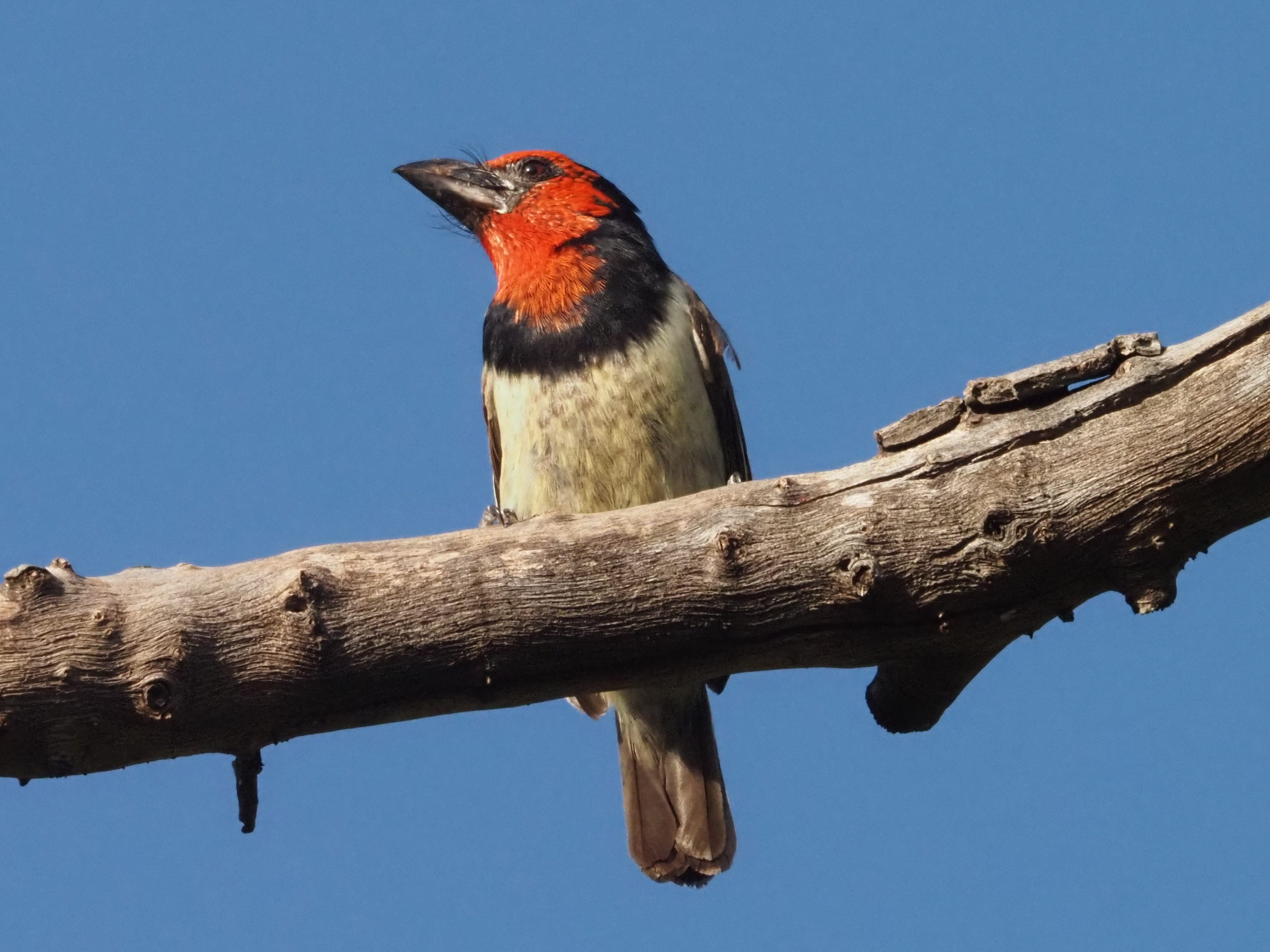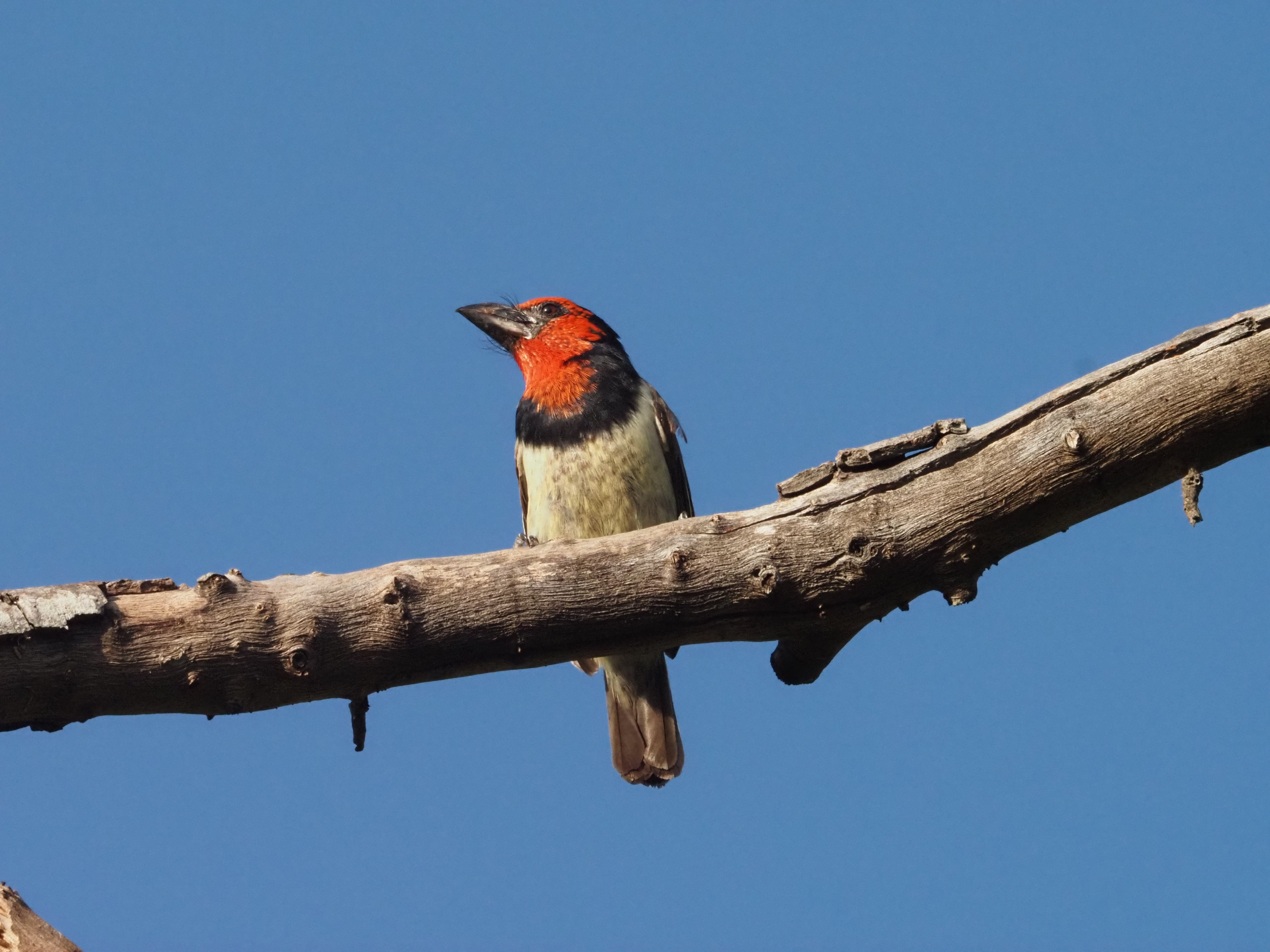 After having a great lunch in our magnificent lodge around Mkuze, we had a gentle walk around for the rest of the afternoon. It was rather windy, but we still pick up a number of new birds for the trip including Purple-breasted Sunbird, Dark-capped (formerly Forest) Weaver, the very smart Black-throated Wattle-Eye & White-eared Barbet plus wonderful views on Striped Kingfisher, Purple-crested Turaco and Burnt-necked Eremomela.