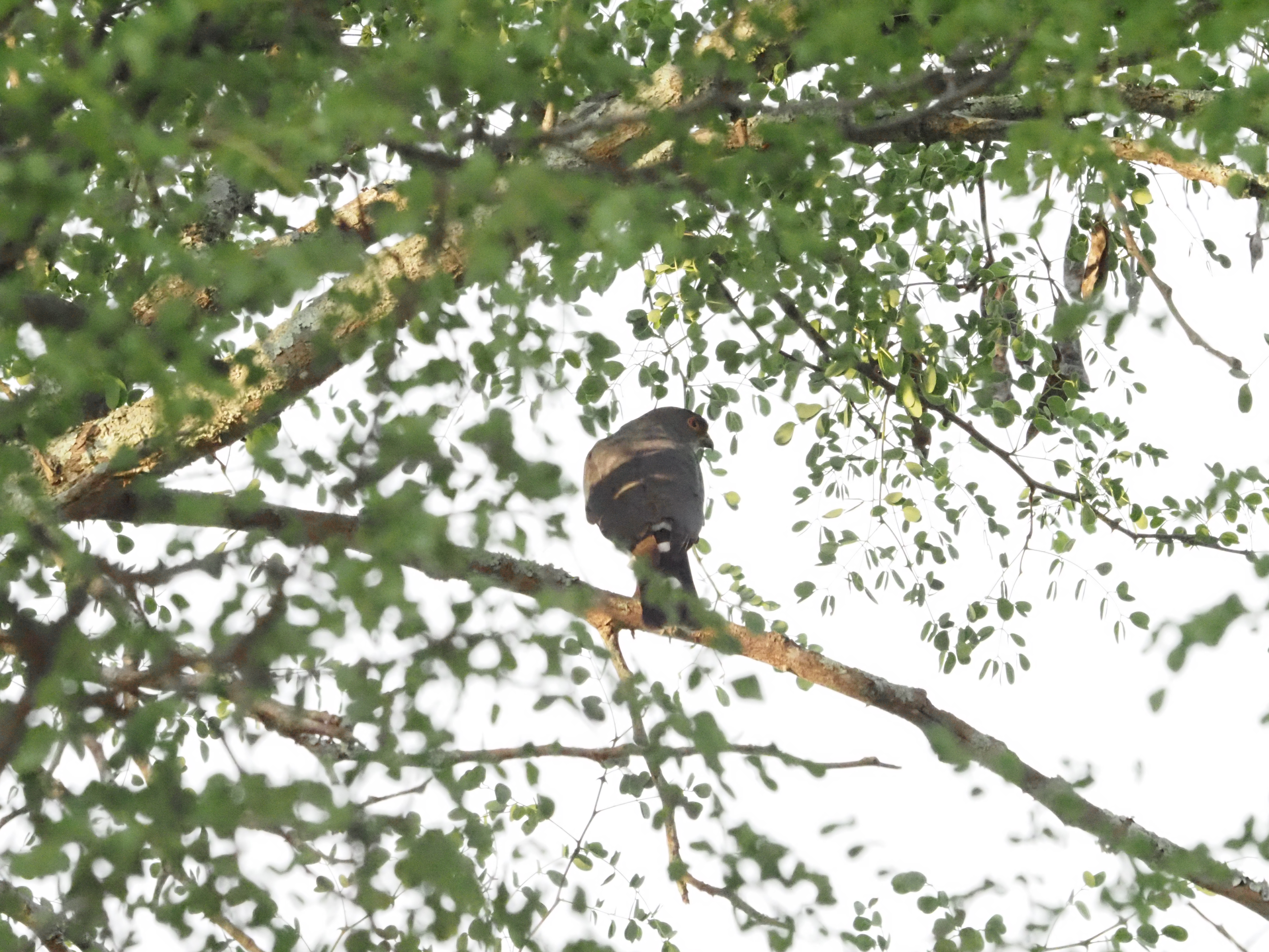After lunch, we went to check to very special nesting sites. In the first stop, a massive nest of African Crowned Eagle was waiting for us in a line of eucalyptus. After some great scope views on the massive eagle on its nest, we covered the short distance to the nesting area of a pair of Bat Hawks. After a bit of scanning, we got the pair of hawks quietly resting on a branch, waiting for the sunset to come. The perfect moment to catch bats!
