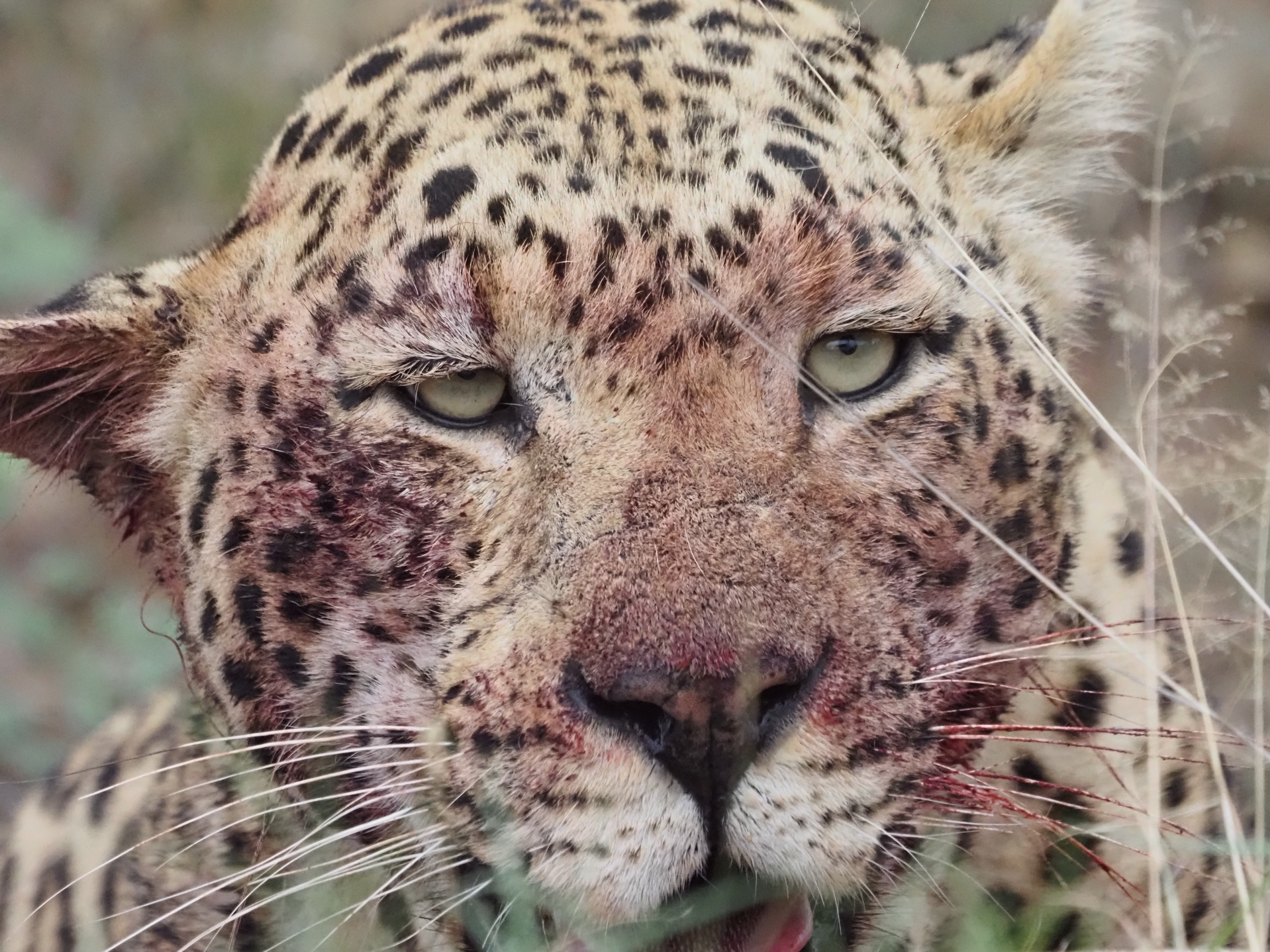 A massive Leopard male was sitting by a track. When we arrived, there 4 other cars enjoying the views on the big cat. It is not surprising to see Leopards right by the road, but we had a quite extraordinary bonus track. Only a few moments after we arrived, two Warthogs were seen running away, tails up only a few metres away from the Leopard. In between, a small collector of rain was under the road. The small pipe was not of major interest, bu suddenly the Leopard when inside the pipe, and screams came out of the pipe. It was clear that a small Warthog was inside. During the next minute we had a full cacophony of screams, slugs and snarls, ending in a complete silence. It was obvious than the fight was off, and Leopard was enjoying the meal inside the pipe. We decided to wait a bit longer, and after 40 minutes of wait only 2 cars were there. At the end, the massive male came out of the pipe full of blood and with evident wounds. For the next 10 minutes, we enjoyed great views on the cat, only 4 metres away from the van. It was exhausted and dirty, but became one of the most extraordinary mammal sights during the tour.