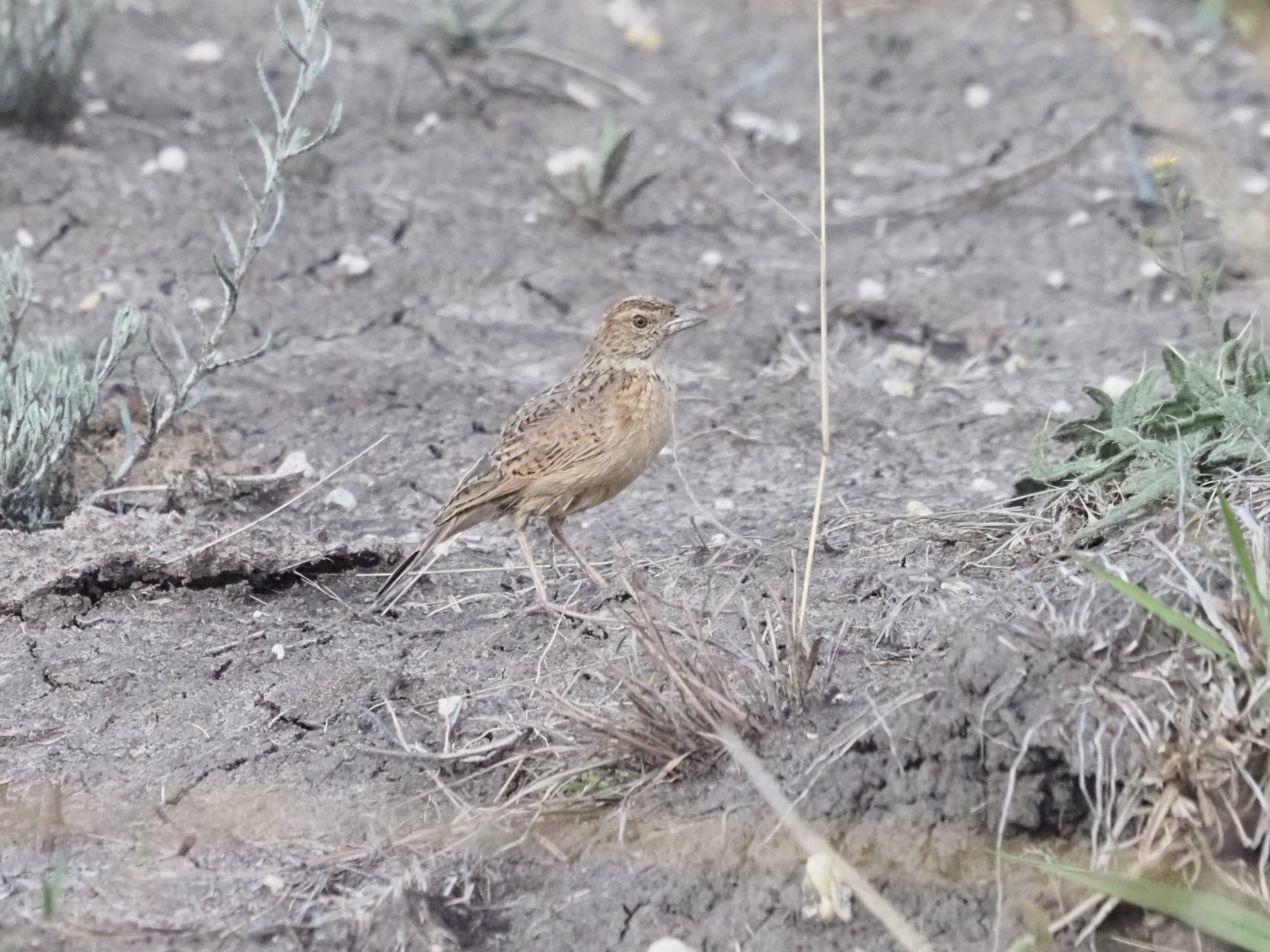 Once arrived to our first proper birding stop, the sightings came as drops in a rainy day, and soon we enjoyed Blue Waxbill, Greater Sparrow, the tame Kalahari Scrub Robin, African Pipit and several lovely Scaly-feathered Weavers. It took us literally 30 seconds to find the first Short-clawed Lark, an obliging bird that offered excellent photo opportunities. The short grass plain where we found it was full of goodies, including Black-faced Waxbills, several Cape Sparrows, 2 Desert Cisticolas, the first of many Yellow-fronted Canary, Black-chested Prinia and 1 Greater Kestrel. We spent some extra time trying to find the often shy Pink-billed Lark, but we were unlucky, and after some time the Crowned Lapwings around became specially noisy, a sign of the sunset to come. Already moving to our accommodation, we had a fast stop to take a look to the first Familiar Chats and White-browed Sparrow-Weavers of the trip.
