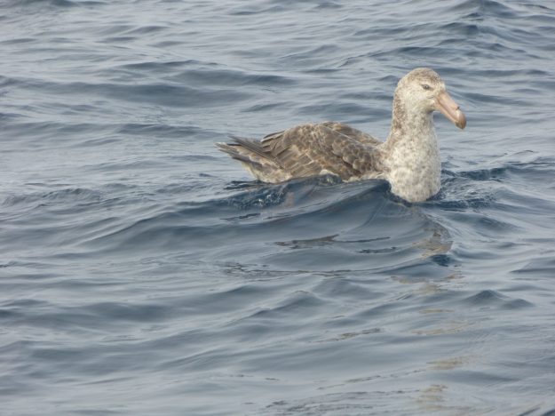 The sea was extremely plain and we only got the first flocks of seabirds around a large trawler. Here we got tens of Sooty Shearwaters but also Black-browed Albatrosses and we were also lucky to find a few Great Shearwaters,1 Sabine’s Gull flying quite high and a superb Northern Giant Petrel that was following the ship. Here, the only Arctic Tern of the trip was seen as well. A second trawler was not far away from us, and it was mandatory to take a look. We approached this second vessel from the back, and we were lucky find some good birds there. First it was the only one Indian Yellow-nosed Albatross of the day, this is a quite common species, but the conditions were probably too calm for them to move. A few minutes later we also found a nice Spectacled Petrel moving along with the many White-chinned’s, and at least 4 Cape Petrels. A few Cape Gannets were fishing here, providing good views to the group. Several Shy & Black-broweds Albatrosses were sitting on the water, and we enjoyed long views on these amazing beasts. We still had some time here, but we only had a small flock of 4 Sabine’s Gulls as an interesting sighting.