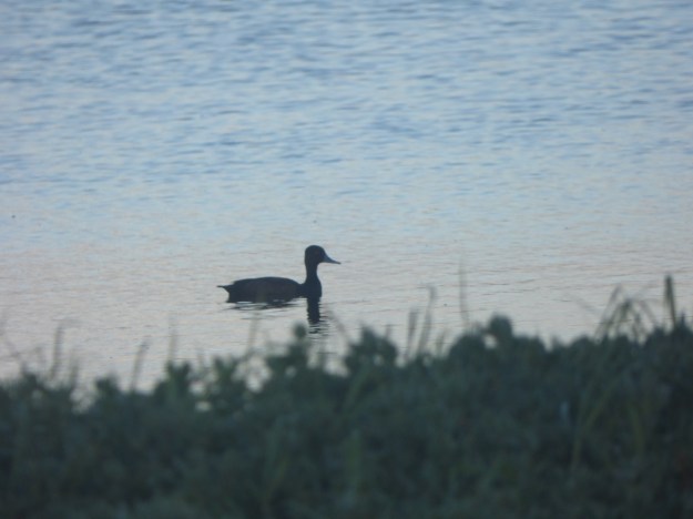 Southern Pochard (Netta erythrophthalma) in False Bay Nature Reserve at sunset.