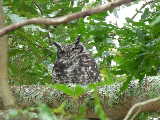 Spotted Eagle Owl (Bubo africanus) roosting in the Botanical Garden.