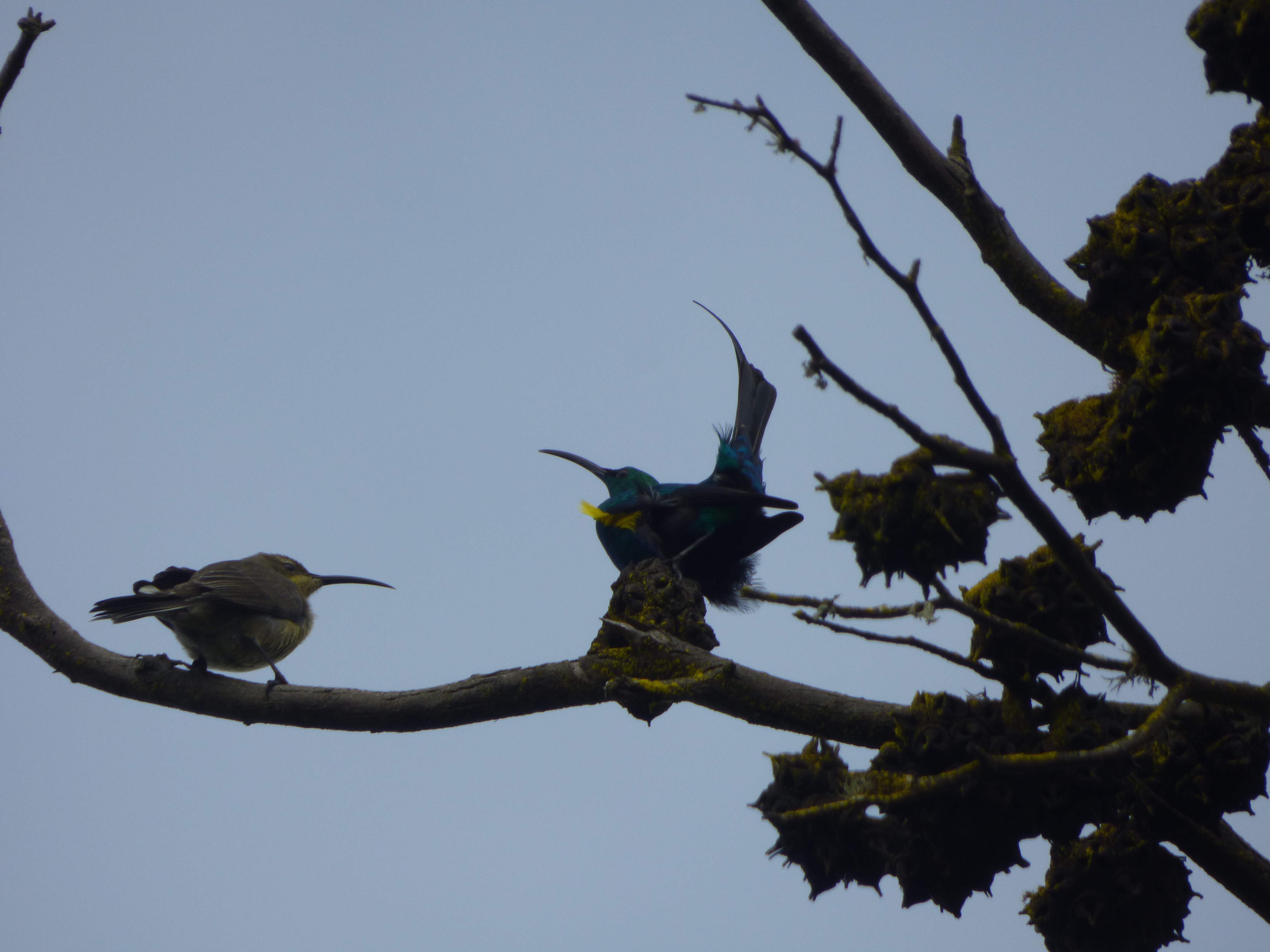 Back into the car, we had a short drive until our next stop, a small Botanical Garden by the hills carpeted with fynbos. In here we had a first contact with common species living in woodlands or tall scrubs such as Olive Thrush, Southern Masked Weaver, Laughing Dove, Brimstone Canary, Cape Robin Chat but also enjoyed great views in a small flock of Swee Waxbills and the only views on Cape Sugarbid and Blue-Mantled Crested Flycatcher of the trip!