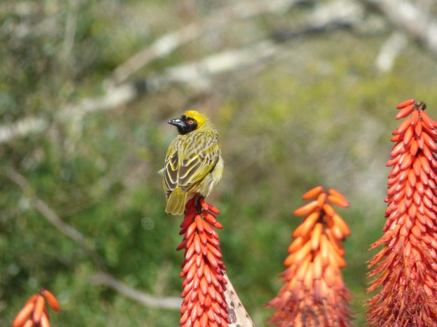 Cape Weaver (Ploceus capensis) displaying in our lunch stop.