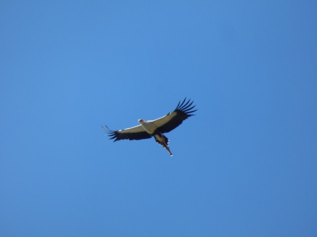 Once we arrived to De Hoop Natural Reserve we didn’t have to wait long until we got our first good bird since we had a stop by the lane to enjoy a small flock of Cape Vultures feeding in a carrion! Cape Vulture is an endemic species with decreasing populations. In Western Cape there is only one colony left, inside the De Hoop Natural Reserve. There were 8 birds and we even were granted with a massive Martial Eagle joining them in the carrion!