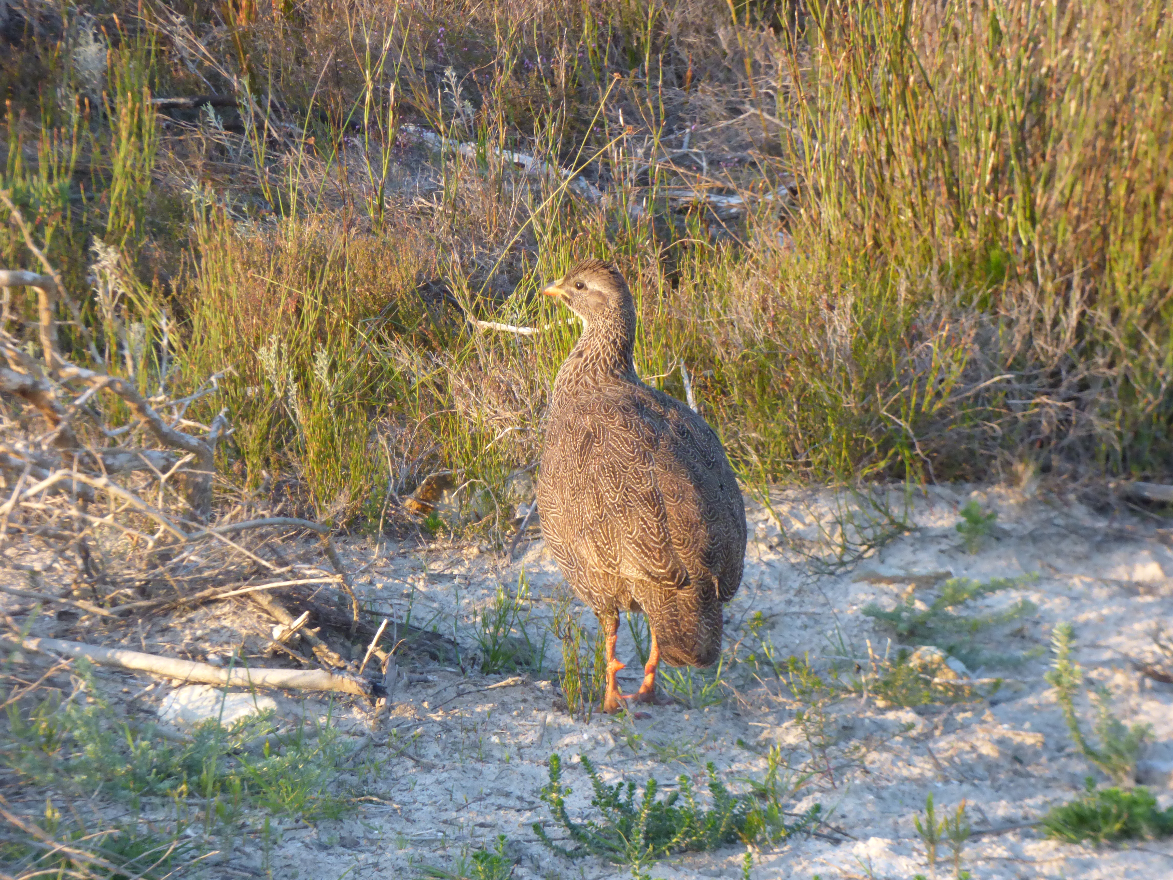 In the channels we got good views on both Little Rush and Lesser Swamp Warblers and Levaillant’s Cisticola showed well despite the strong wind. An African Marsh Harrier was crossing the sky just went a Burchell’s Coucal was heard calling in a thicket nearby. In our way out, we had a short stop to watch the first Cape Spurfowls of the trip.