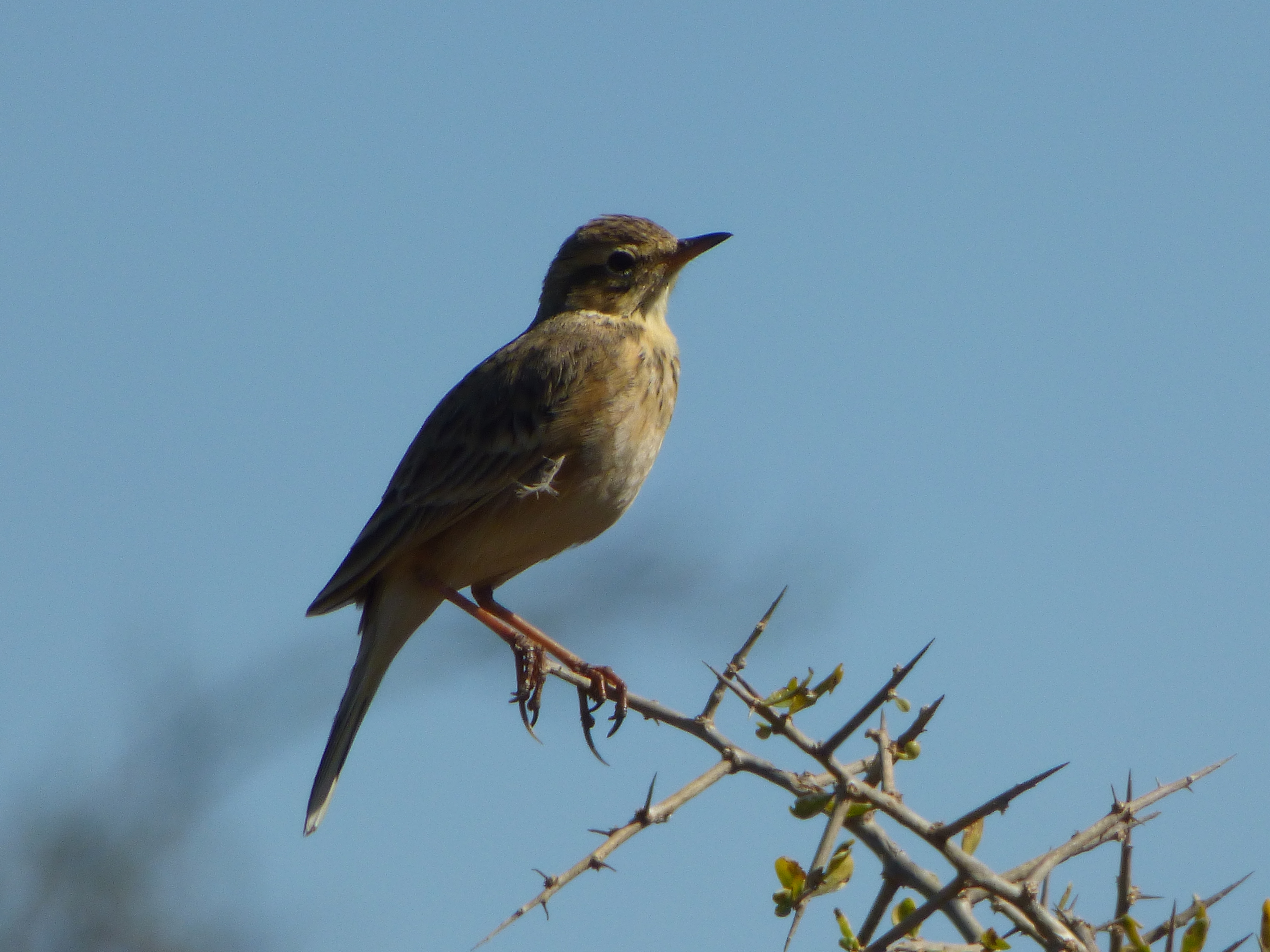 Our first proper stop was just by road. Even if we had some traffic (and its associated dust), the birding was superb. Here, a rocky outcrop is broken by a small stream, being the perfect place to get a good array of species. Small parties of Lark-like Buntings were moving everywhere and in only 5 minutes we got a fabulous list of birds including Layard’s Warbler, Common (African) Reed Warbler, Common Waxbills, Cape Penduline Tit singing from the top of small bush along the stream but also Long-billed Crombec (also referred as Cape Crombec), the first Hamerkop of the trip, several Karoo Prinias and Grey-backed Cisticolas, 2 Mountain Chats, 7 Black-headed Canaries moving on the ground and in the lower flowers, and even a Karoo Thrush. But the very best was probably a nice Verreaux’s Eagle showing up in the sky for a couple of minutes. Even if it was not really close, it was a wonderful sight!