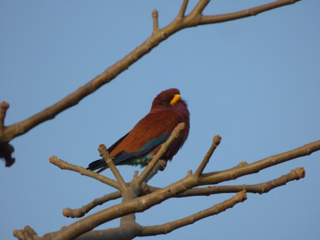 After some rest we moved to Al Qrum Natural Park for an evening birding. Despite being a bit quiet if compared with other visits, especially when talking about passerines, the area still produced excellent views on Red-vented Bulbul (Pycnonotus cafer), Common Kingfisher (Alcedo atthis), Bluethroat (Luscinia svecica), Citrine Wagtails (Motacilla citreola), Spotted Redshank (Tringa erythropus), Purple & Striated Herons (Butorides striata), the first Crested Honey Buzzard (Pernis ptilorhynchus) of the tour while it was being harrased by a flock of House Crows (Corvus splendens) , several Indian Rollers (Coracias benghalensis) and a rather surprising Spanish Sparrow (Passer hispanoliensis) male!