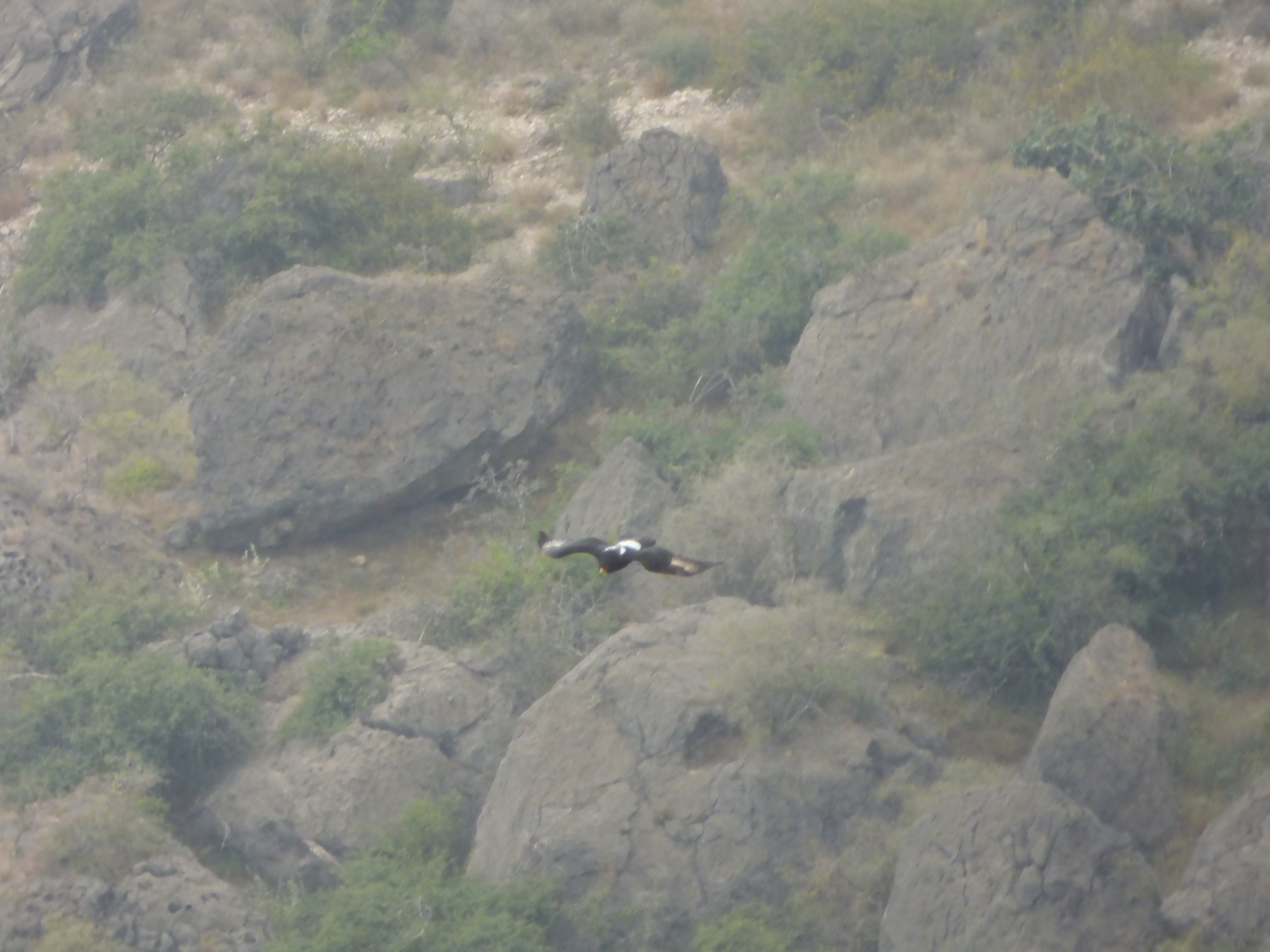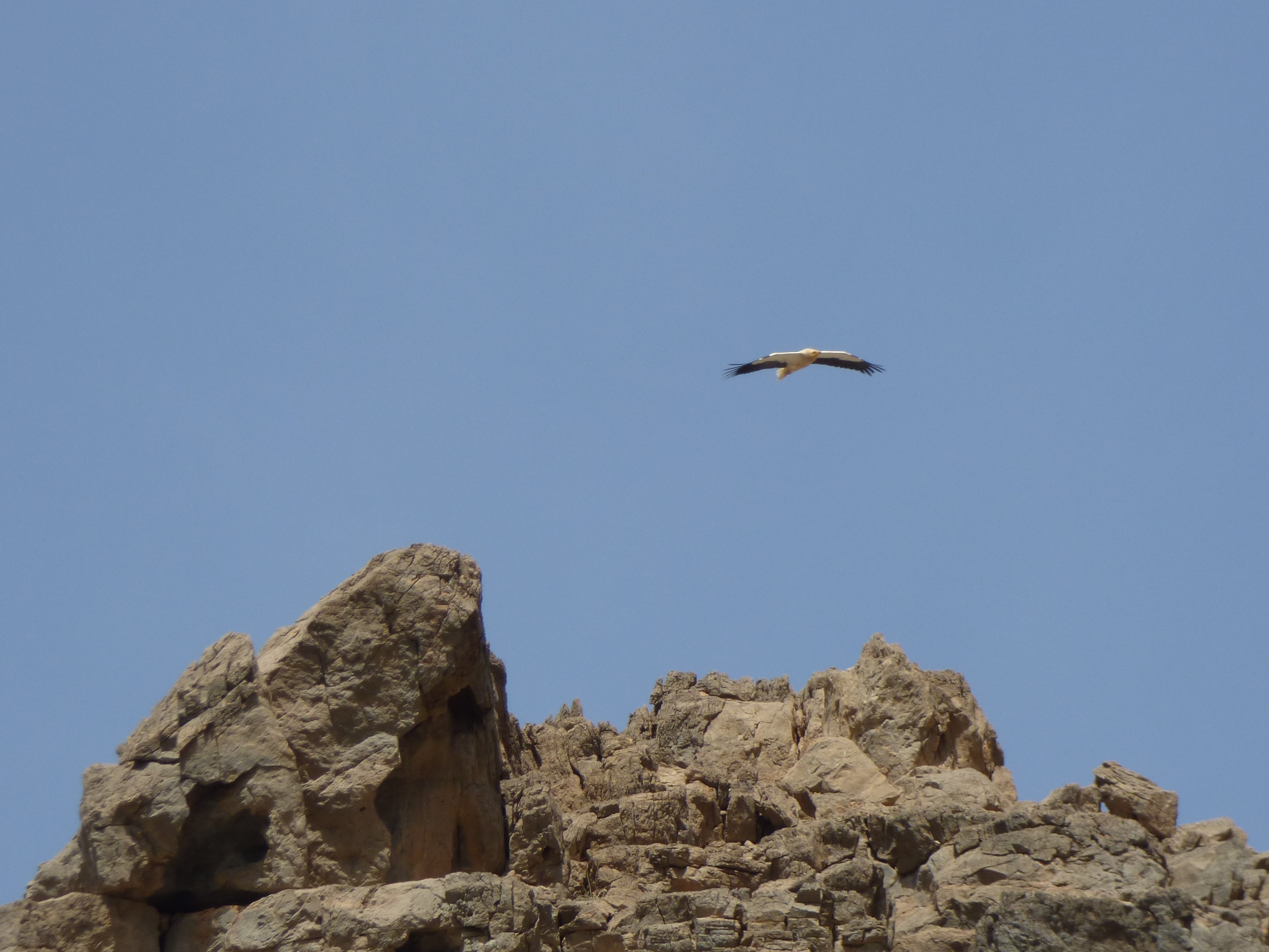 From here we kept going higher. The vegetation becomes slightly thicker and soon we were enjoying the first of many Arabian Wheatears along with the commoner Isabelline and Desert Wheatears. After some nice shots, we drove to one of the impressive locations along our itinerary. Here, the plateau abruptly ends in a massive cliffs that goes down for over some hundreds of metres before in transforms into a complex myriad of valleys that led to the close Arabian Sea. It only took us a couple of minutes to have a pair of Verreaux’s Eagles passing by, providing great views. The Eagles stop in the top of some distant rocks, but not for long. Fan-tailed Ravens were not happy with its new neighbours so they moved them out the cliffs. During the next minutes, we got a number of sights on the Eagle moving always along the edge of the cliffs. The cliffs were also having a some Arabian Wheatears and we were also pleased to add Rock Hyrax to the trip list as we had some nice scope views. Before leaving the area, we had long scope views on the pair of Verreaux’s Eagles on the top of the cliffs, and a light form Booted Eagle soared above them as we started moving back to the vehicles.