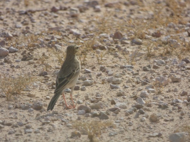 From here we drove North, and arrived to Qitbit in mid afternoon. After a break, we meet again to go North. It had been reports of Syke’s Nightjars in an oasis close by and we drove there in a lovely late afternoon light, arriving to the place about sunset. A short walk around produced a Red-throated Pipits and 2 Water Pipits (not in the list as they only flew off and we only got poor flight views). We only had to wait a few minutes to dark mantle to cover desert and see the first Nightjar moving around. For our surprise, it was a Syke’s Nightjar! Yes, we had excellent, long views on the bird flying around and suddenly a second Syke’s joined the first! Behind, a Egyptian Nightjar was also moving, and we could compare the sizes, coloration marks and behaviour of both species. Syke’s appeared always clearly smaller and more compact than the Egyptain, with shorter wings and tail, and showing (the male) the nice white pannels at the end of the undertail. What a sight! One of the Syke’s Nightjars sat down in front of us a couple of times, producing a big excitement in our group! After several minutes of observation, we decided to go back to our modest accommodation, where we enjoyed a surprisingly good dinner! A really good day, again!
