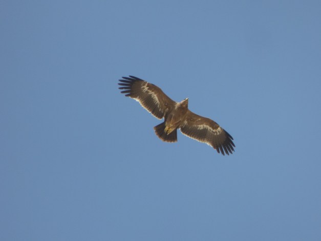 This plateau stands between 700 and 900 metres above sea level, and runs parallel to the Dhofar coast. As soon as arrived to the highlands, we started to have nice birds. Tree Pipits and Cinnamon-breasted Buntings were moving in small flocks and Fan-tailed Ravens were all around the sky, often joined by Tristam’s Starlings. Up in the sky, we got nice views on Steppe Eagles, and a few Eastern Imperial Eagles were not high up but on the posts along the road or even feeding on the ground! They provided great views that everybody enjoyed very much. A nice Siberian Stonechat was also a nice pick up, and again provided really close views for the enjoyment of the photographers in the group. Following the lane, we noted a couple of Booted Eagles circling right before a superb male Pallid Harrier showed up flying really low on the slopes. A Short-toed Eagle took over, providing good views. Now, there were 3 Eastern Imperial Eagles going West, and a small flock of Steppe Eagles was circling. At this point, 4 Eurasian Griffons appeared soaring low above our convoy.. We were not even arrived to the first proper stop of the morning when another Pallid Harrier was noted hunting in the plateau. We enjoyed good views again, and could compare this bird with a close Steppe Eagle.