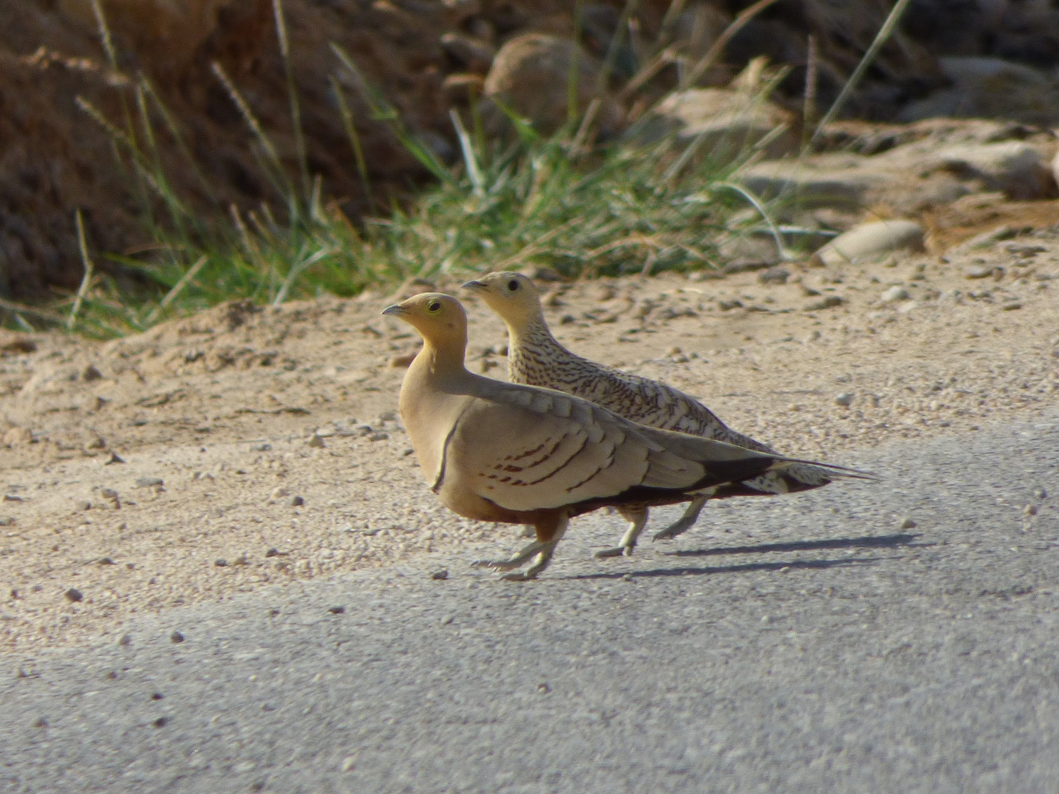 But all was interrupted by a flock of Chestnut-bellied Sandgrouses that landed 150 metres away from the river bed. We fastly approach them, getting nice views on the birds while moving on the ground!