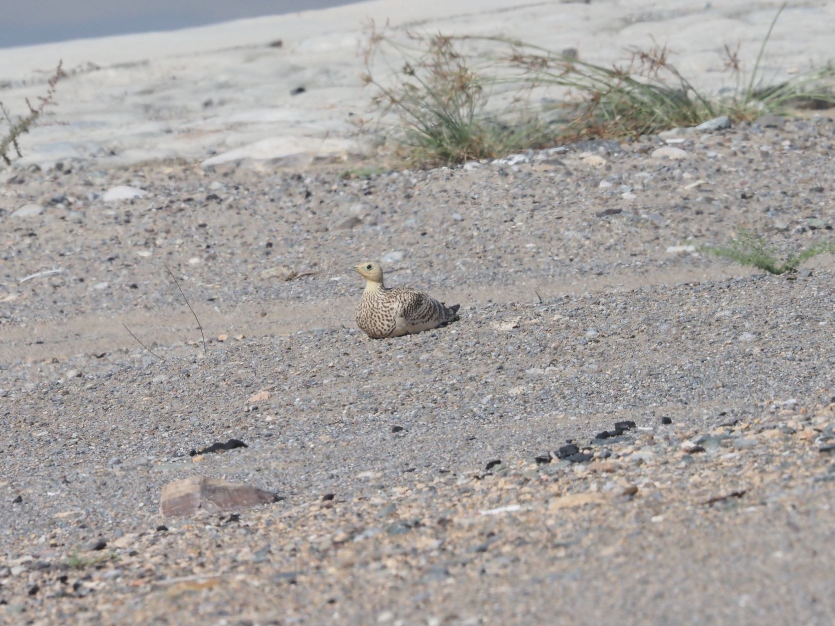 But all was interrupted by a flock of Chestnut-bellied Sandgrouses that landed 150 metres away from the river bed. We fastly approach them, getting nice views on the birds while moving on the ground!