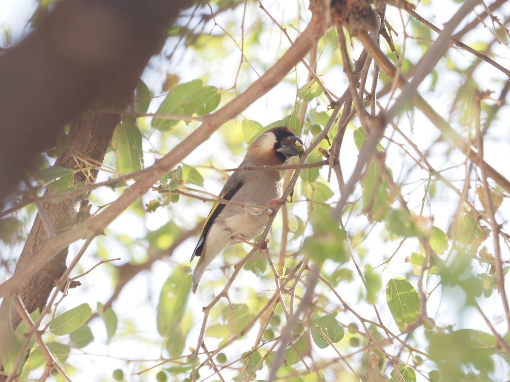 We walked down the aïn to scan some proper trees for the main target in the area. Suddenly, two Arabian Grosbeaks appeared in the top of one of the trees just to disappear as fast as they came! Virtually nobody saw the birds so we started scanning the trees when suddenly the pair of Grosbeaks flew off the trees. We followed the birds, distracted by the many Arabian Warblers and the Tchagras. We found just at the moment that Short-toed Eagle was flying above us. A few tour participants connected with the birds, but for our desperation they flew off again. After 10 eternal minutes it was Ramiro who found one of the Grosbeaks in the top of a dead tree, but very far away. And again, they flew off!
