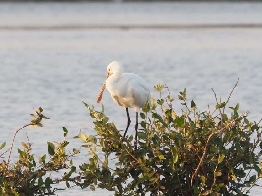 A carefully scanning of the muddy flat land provided soon scarcer species, including Sanderling but also 5 Broad-billed Sandpipers. Even if far away, we all had good scope views before at least 2 birds moved closer and allowed some shots and a detailed views of their plomages. As Broad-billed’s moved we also did so, and we placed outselves right in front a patch of mangroves. Here we had nice views in Common Kingfisher, Striated Herons and Clamorous Reed Warbler. A Marsh Harrier and a Caspian Tern were patrolling the area, trying to get some preys. Suddenly, a small flock of Indian White-eyes appeared in the outer branched of the mangroves. There were at least 3 birds, and everybody in the group enjoyed good scope views on them, showing its electric yellow upperparts, the large white eye ring and the very contrasted, grey underneath.