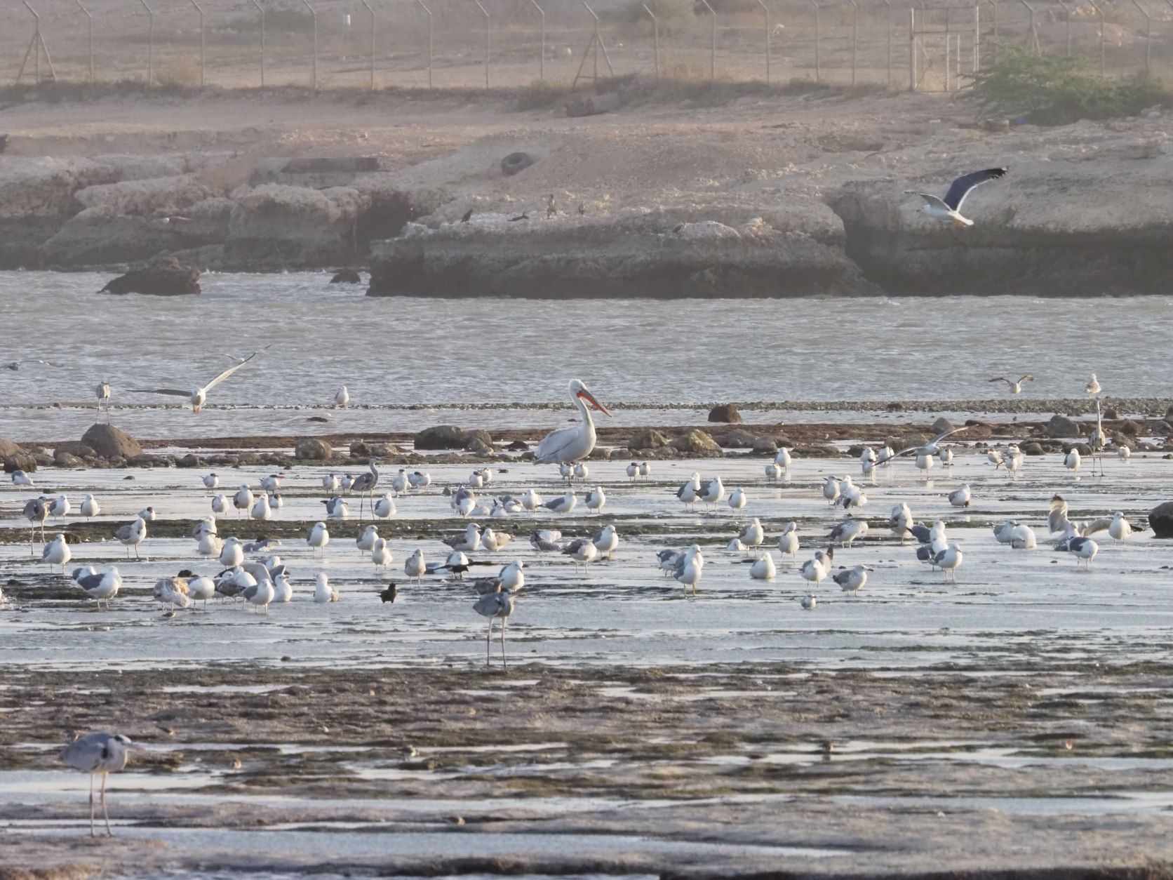 From here we moved to a different place to enjoy our packed lunch. Once over, the sandwiches were surprising, and while having lunch we had really close views on Great Crested Terns, Western Reef Egrets, Heuglin’s Gulls, Black-headed Gull and a couple of Caspian Gulls. In the sea, large flocks of Slender-billed Gulls were feeding, very excited with the small fishing boats around, and Lesser Crested, Sandwich and Little Terns were all noted.