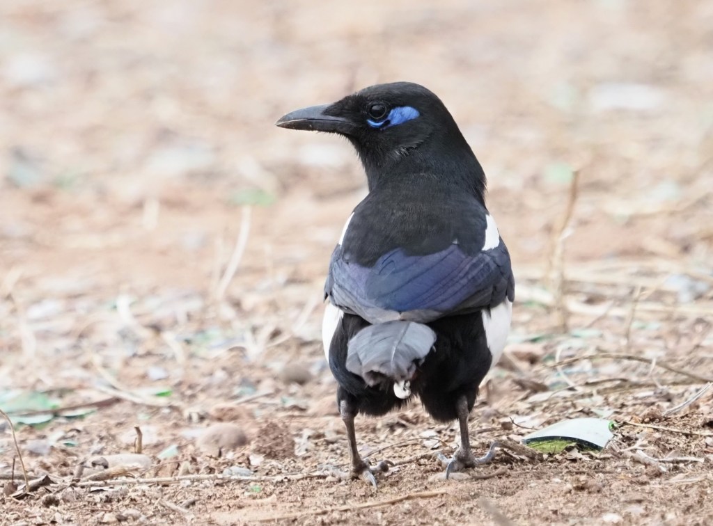 Maghreb Magpie (Pica mauretanica) showing out its smart blue facial markings
