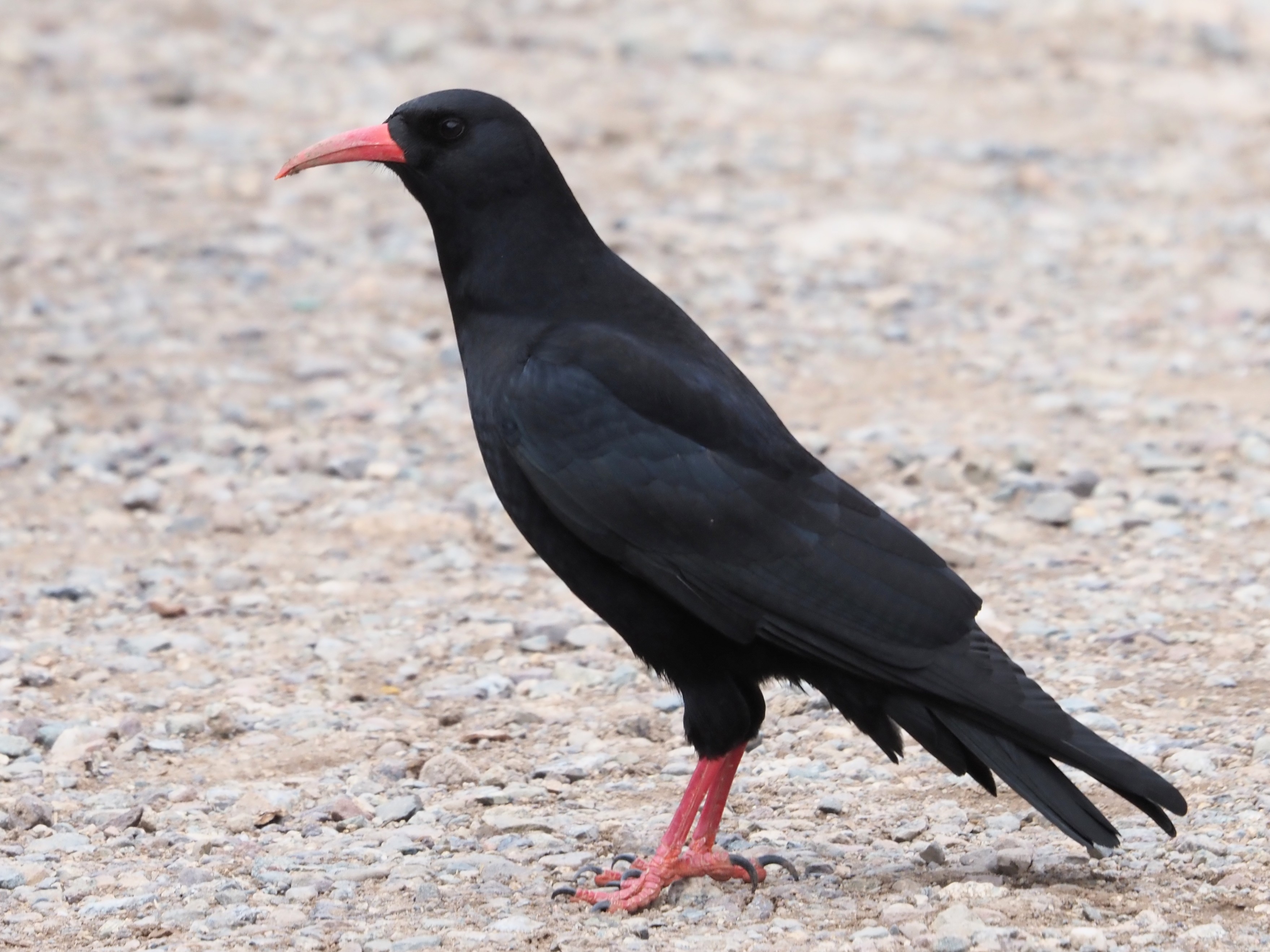 Atlas Horned Lark (Eremophila alpestris atlas)Alpine Chough (Pyrrhocorax graculus).African Crimson-winged Finch (Rhodopechys sanguineus alienus).A second view on the African Crimson-winged Finch, this time showing the lovely roseate primaries.