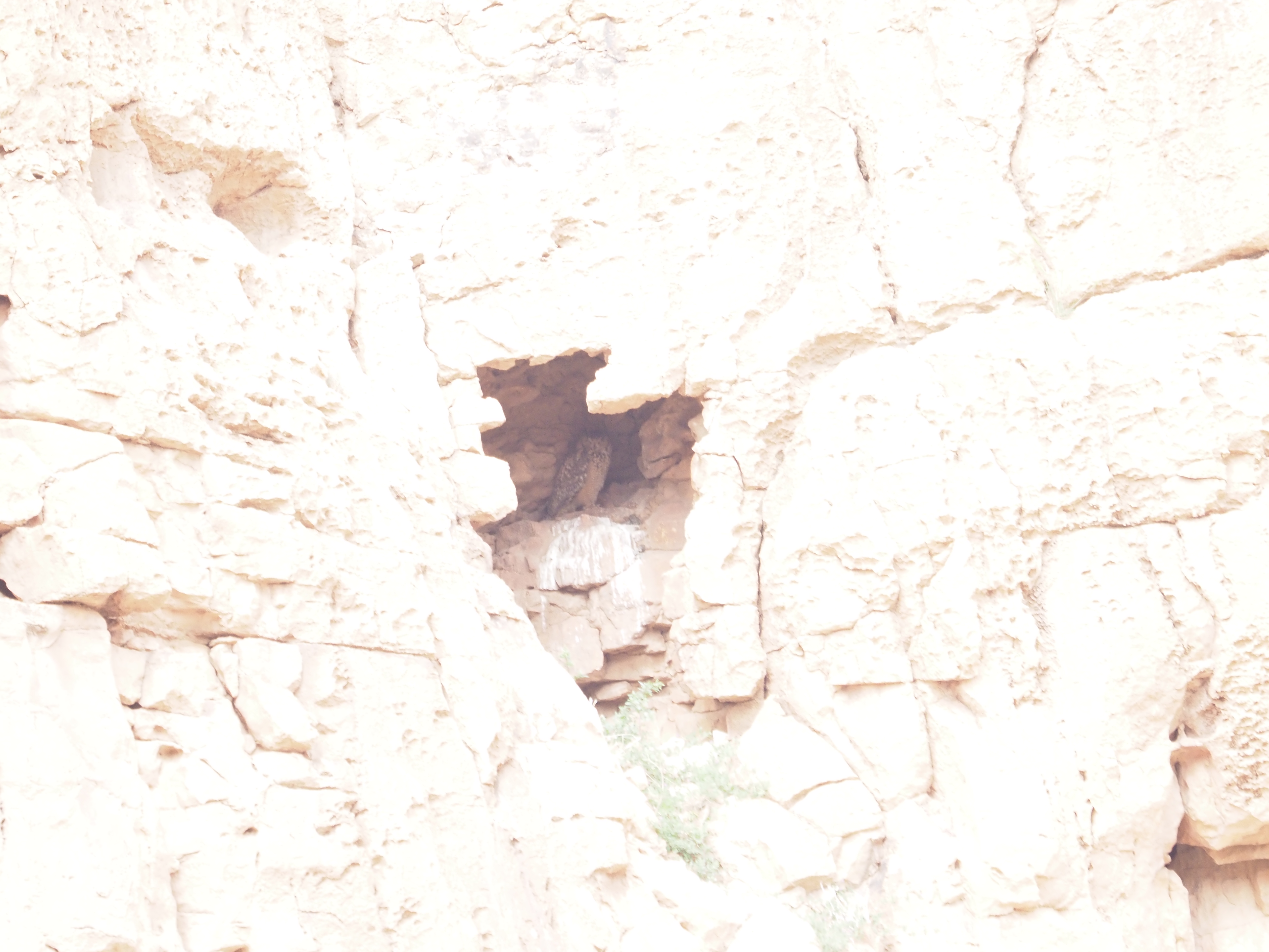 After a short walk we arrived in front of a small cave and the local guide there showed us a Pharaon Eagle Owl with 3 small chicks. Close by we also get Long-legged Buzzards, that look like nesting around. Trumpeter Finches are flying around and a bit beyond we got a distant Maghreb Wheatear. Unfortunately it is shy and we need an extra walk to get nice views on the pair nesting around. More than satisfied with this stop, we went back to the plains and soon we contact with a Thick-billed Lark that shows out before disappearing in the vegetation..