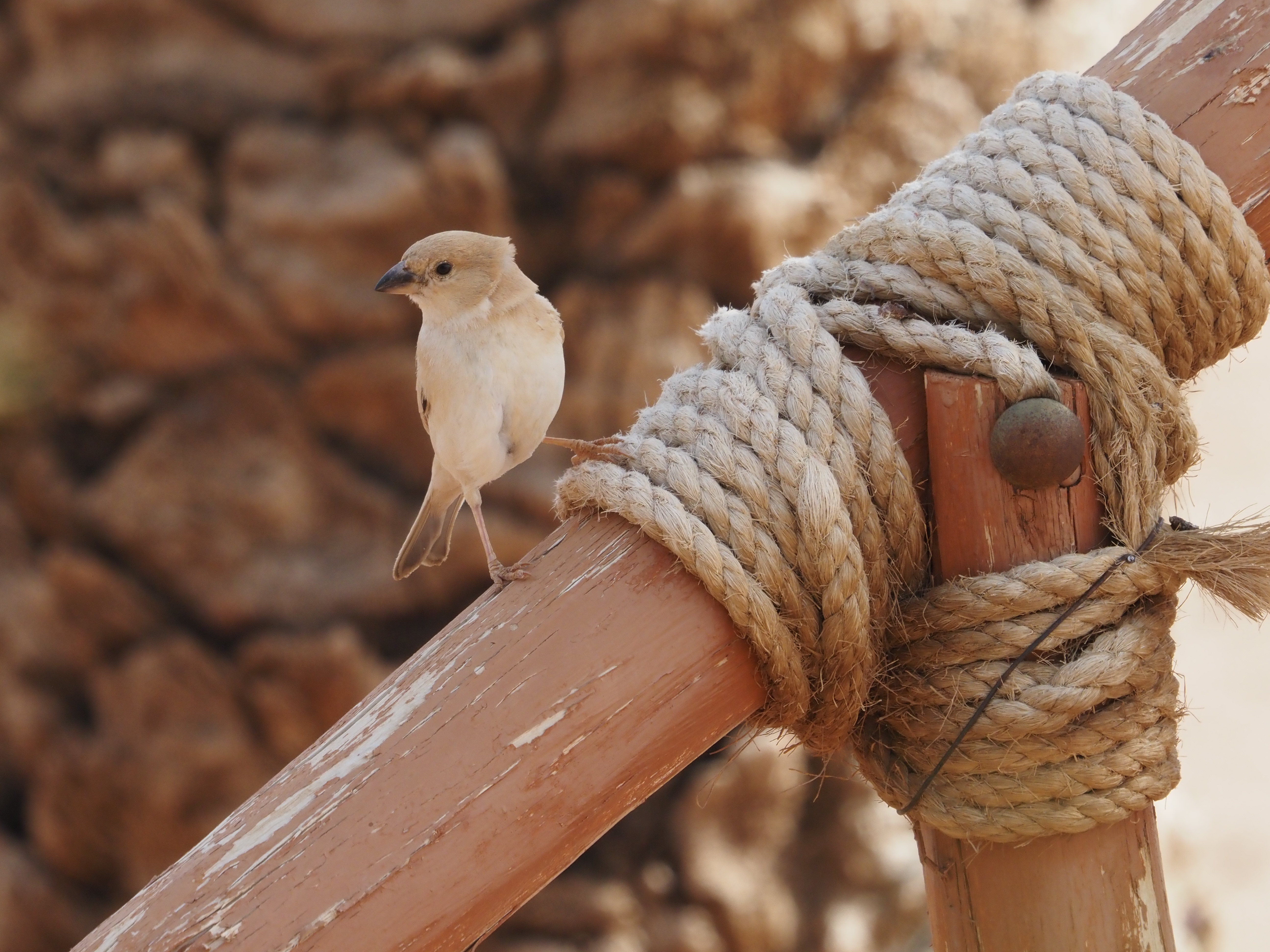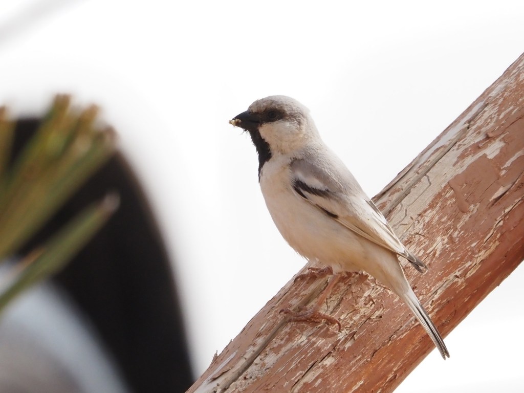 Leaving this amazing spot, we went back to the Desert Sparrow territory, and this time we immediately got the eyes on the birds as they were hanging around very close to their nest. We actually saw one male and two females building the nest.