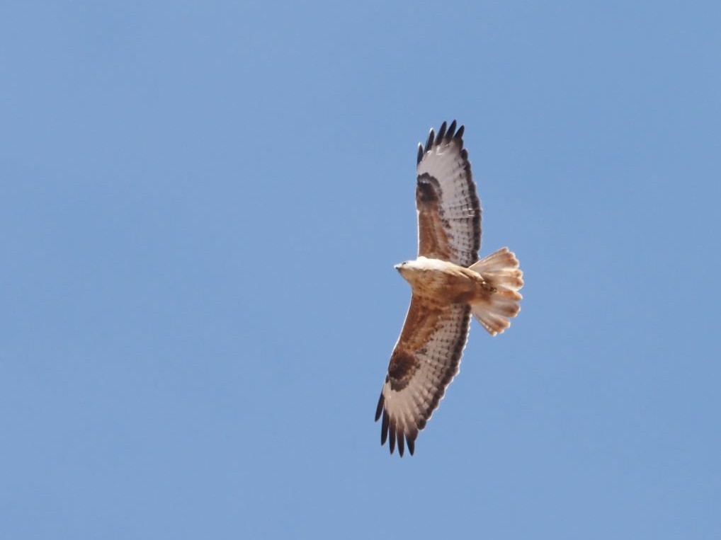 Leaving the hills behind, we drove to one of the few corners around Lleida where traditional wheat farming is still dominant. These areas host an abundant birdlife, and the number and variety of birds of prey is quite stunning. It didn’t take long before we had several views on Western Marsh Harriers, Red Kites and also Common Buzzards, some Griffons, Eurasian Sparrowhawk and even 2 Goshawks. All of this before the real goal of this stop appeared in one of its preferred trees: the long-staying Long-legged Buzzard! This bird of prey, nesting from Bulgaria to the East until the Arabian Peninsula, is a huge rarity in Catalonia and always worth a visit! This time we had excellent scope views, and also the chance to compare the size of this large Buzzard with a much smaller Western Marsh Harrier that was perched in a tree next to the Buteo hawk.