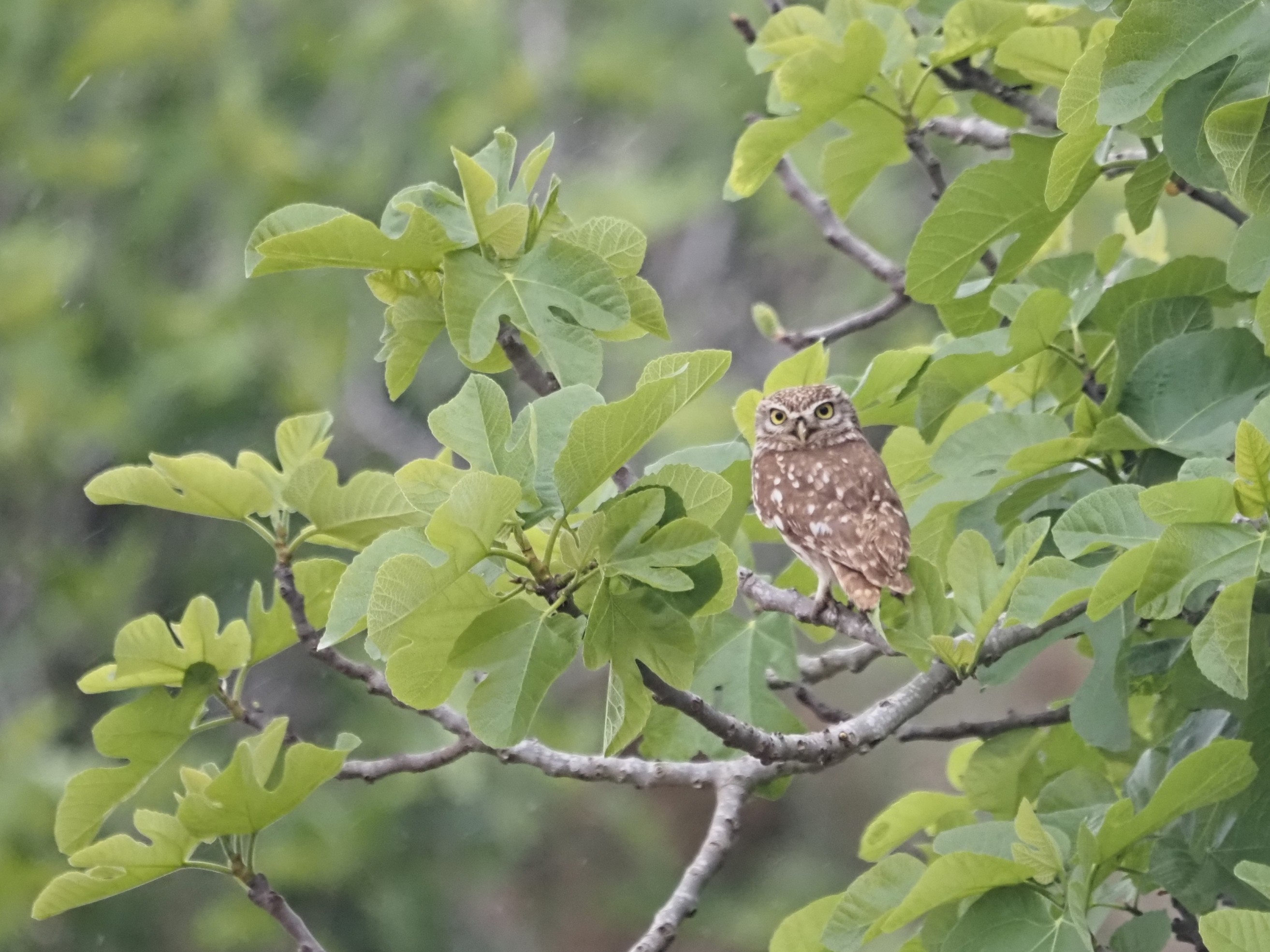 The clouds were already coming, and temperature was getting down (collapsing!), but we managed a second stop before the heavy rain arrived. In a small patch of reeds and tamarisks we found the first Western Olivaceous Warbler (aka Isabelline Warbler) of the trip moving in the vegetation and going on with what it sounded like a subsong. 3 Eurasian Spoonbills were feeding in a small pond along with 1 Common Sandpiper and 1 Little Ringed Plover. Some Little & Pallid Swifts flew above us, providing good looks while we moving away from the river to have a short exploration of the fields around. A flock of 35 Eurasian Siskins was quite a surprise so far South, but little more could be added out of 1 Meadow Pipit and Moussier’s Redstarts. It started to rain heavily so we decided to go back to our accommodation. In our way back, a Little Owl was a nice find!